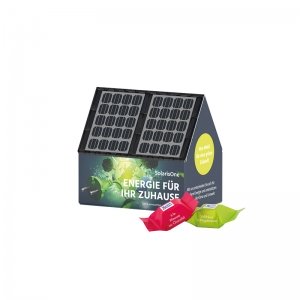 Artikel-Nr: PUC1297.00043Haus Verpackung aus weißem Karton, individuell bedruckt. Inhalt: 4 Ritter SPORT Schokowürfel, variierende Mischung aus den Sorten: Schoko Crisp, Mousse au Chocolat, Vollnuss in Nugatcreme, Karamell Duo, 32 g.