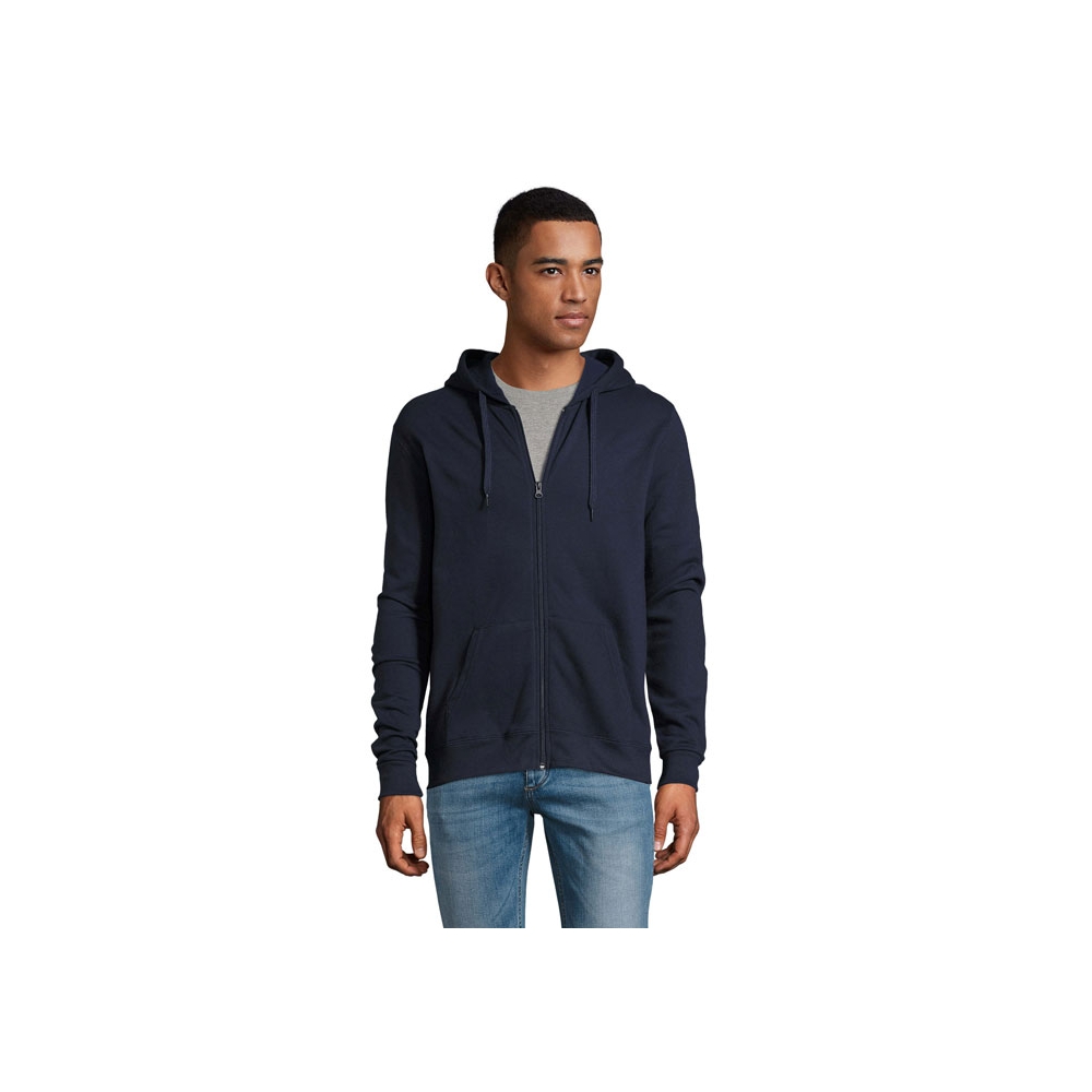 SOL'S STONE Unisex, Hoodie / Kapuzenjacke mit durchgehendem Reißverschluss und 2 Känguru-Taschen auf der Vorderseite. Kapuze mit Ton-in-Ton-Kordelzug, Rippenbündchen am Saum und an den Ärmeln. Seitennähte. No Label. Material: 260g / m², angerautes Material aus 50 % Baumwolle - 50 % Polyester.