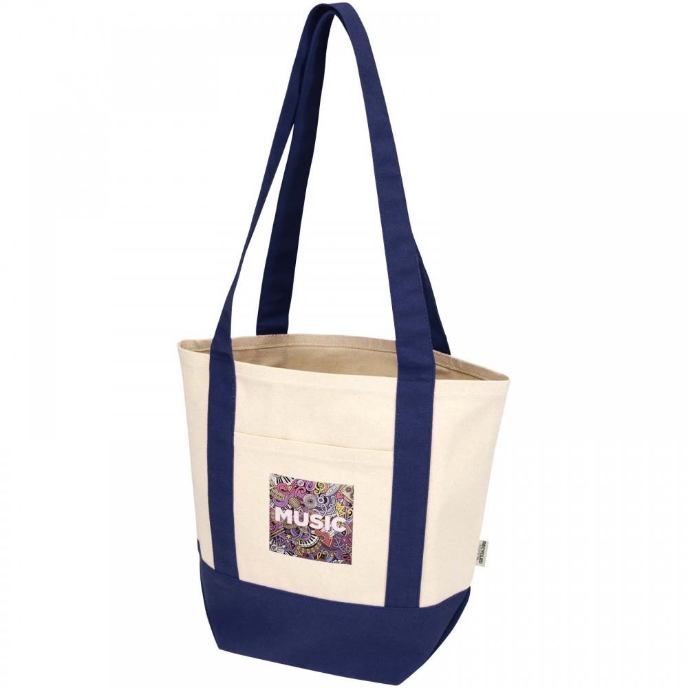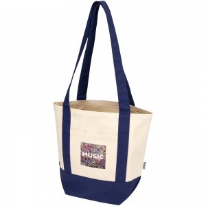 Ausführung: Farbe: Navy, natur Gewicht: 0,18 kg Maße: 33 x 28 x 15 cm Menge pro Karton: 50 Gewicht pro Karton: 10,0 kg Material: GRS-zertifizierte, recycelte Baumwolle, 320 g/m2 Zolltarifnummer: 42029298900