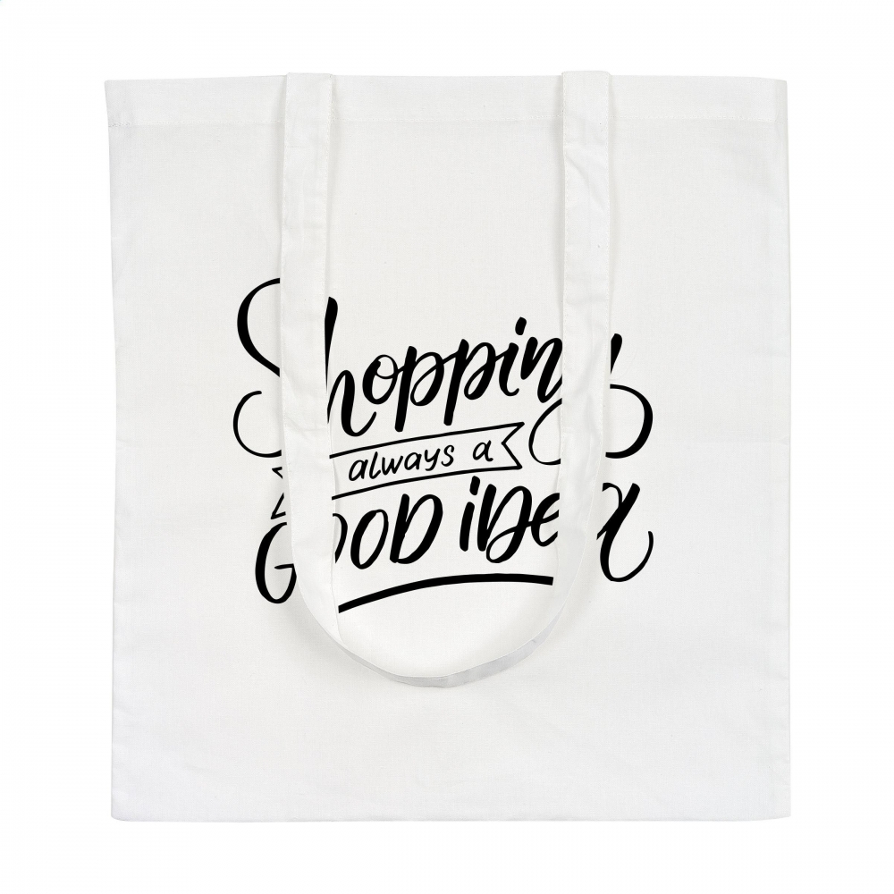 Einkaufstasche mit langen Henkeln aus 100% festgewebter Baumwolle (120 g/m²). Fassungsvermögen ca. 8 Liter.