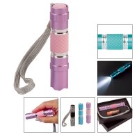 Artikel-Nr: 57371020PI-00Die schlanke und handliche LED Leuchte in drei modischen Farbvarianten ist mit einer hellen 0,5 Watt LED mit 20 Lumen ausgestattet. Das wassergeschützte Aluminiumgehäuse verfügt über ein geriffeltes, gummiertes Griffstück, welches der Leuchte eine angenehme Haptik verleiht und eine sichere Bedienung, auch mit Handschuhen oder bei Feuchtigkeit, gewährleistet. Durch die praktische Trageschlaufe haben Sie die Leuchte immer fest im Griff. Brenndauer bei Dauerbetrieb bis zu 6 Stunden möglich. 1 AA Markenbatterie und hochwertige Karton-Geschenkverpackung inkl.