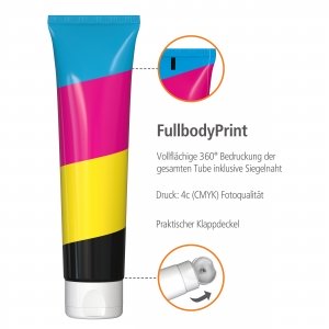 Sensitive Sonnenmilch - LSF 50, parfümfrei ohne Duftstoffe (Hohes Schutzniveau). 100 ml Tube (weiß) mit Klappdeckel. Wasserfeste und schnell einziehende Sonnencreme mit Vitamin E und Glycerin für 24-Stunden-Langzeitfeuchtigkeit. Sofortschutz mit ausgewogenem UVA- / UVB-Breitbandfilter. • Ohne Octocrylene • Vegan • Kein Mikroplastik • Keine Parabene, Mineralöle, Silikone • Korallenfreundlich gemäß Hawaii-Riffgesetz • Klinisch und dermatologisch getestet "Sehr gut hautverträglich" • Hergestellt in Deutschland FullbodyPrint: Vollflächige 360° Bedruckung der gesamten Tube inklusive Siegelnaht. Der Druck erfolgt direkt auf die Tube in atemberaubender 4c Fotoqualität (CMYK). Keine extra Druckkosten pro Stück: der Druck auf die Tube ist im Preis bereits inbegriffen.