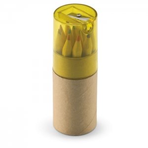 Artikel-Nr: OCBKC6230-2812 Buntstifte in einer runden Schachtel aus recyceltem Papier. Transparenter Deckel mit Bleistiftanspitzer.