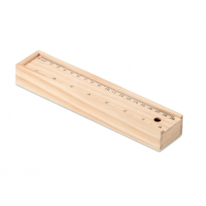 Artikel-Nr: OCBMO9836-4012-teiliges Schreibset in einer Holzbox (2 Bleistifte, 6 Buntstifte, Spitzer, Radierer, Lineal in cm und Inch). Das Lineal dient auch als Deckel.