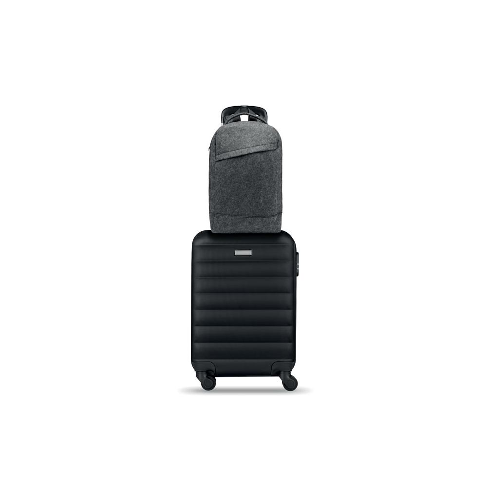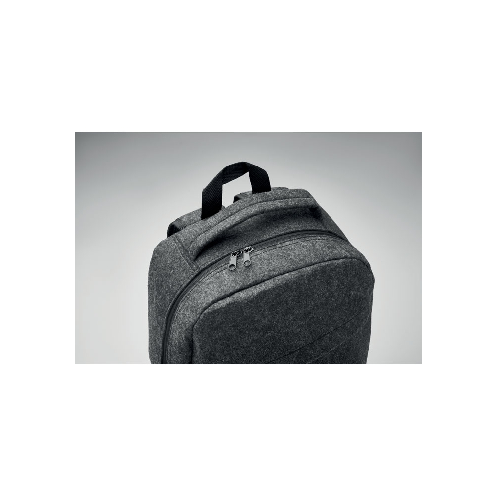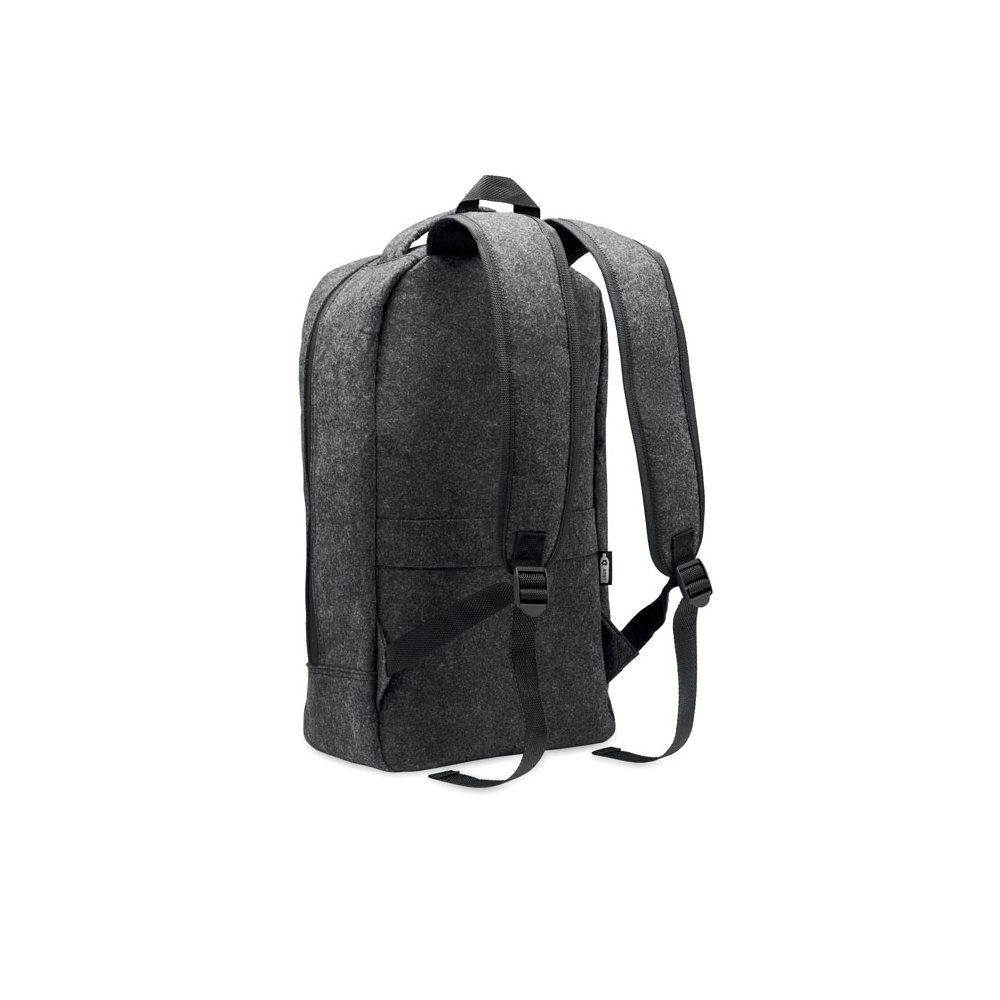 Artikel-Nr: OCBMO2164-1513'''' Laptop Rucksack aus RPET-Filz. Großes Hauptfach und Reißverschlussfach. Gepolsterte Rückseite und gepolsterte Schultergurte. Trolley-Halterung.