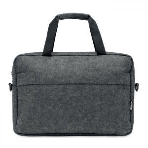 Artikel-Nr: OCBMO2165-1515'''' Laptoptasche aus RPET-Filz. Großes Hauptfach und Fronttasche mit Reißverschluss. Inklusive abnehmbarem und verstellbarem Schultergurt. Trolley-Halterung.