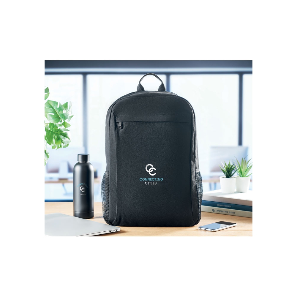 Artikel-Nr: OCBMO6763-0315'' Laptop Rucksack aus gewaschenem Canvas (340 g / m²). Gepolsterte Rückseite und gepolsterte Schultergurte. Mit Trolley-Halterung.