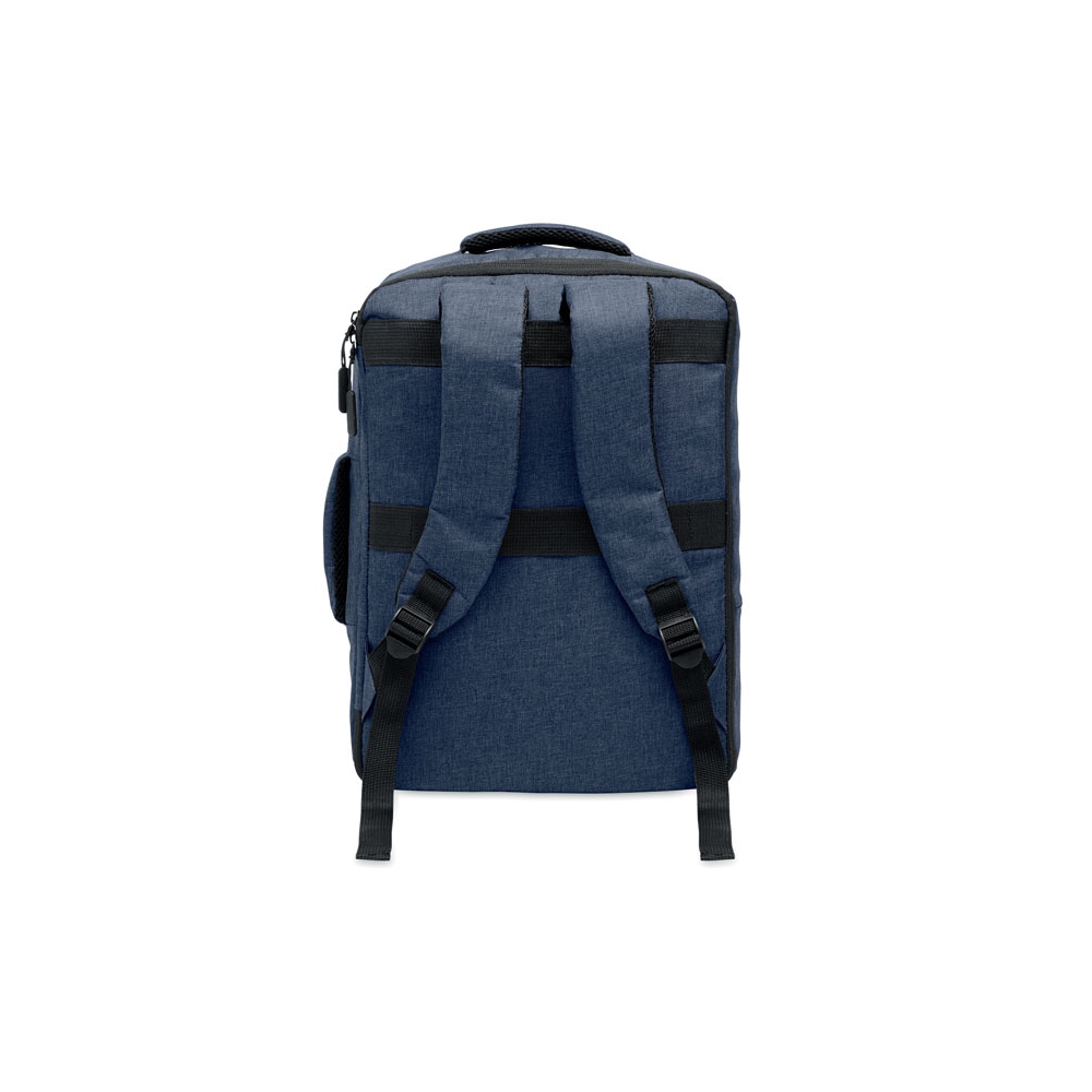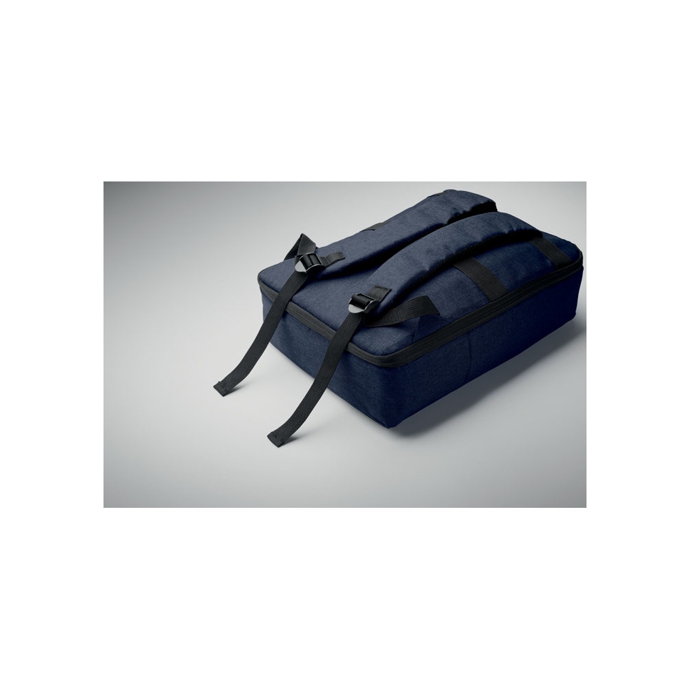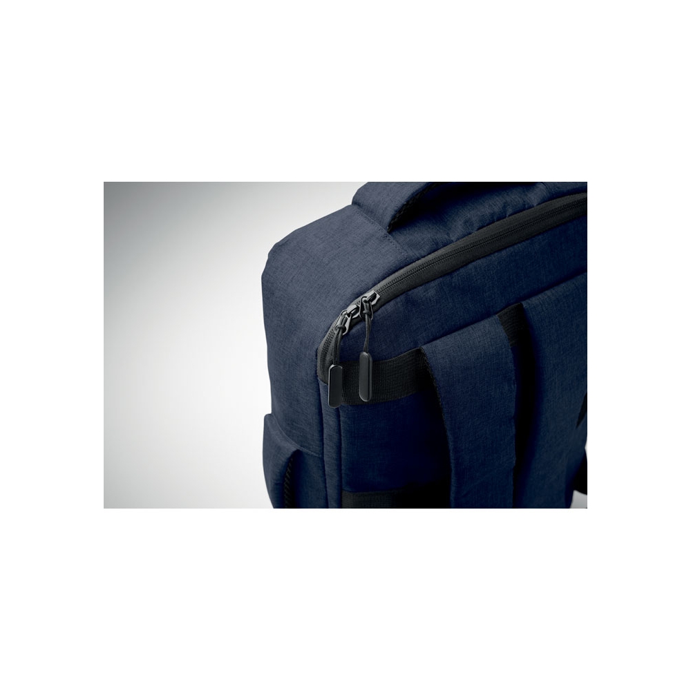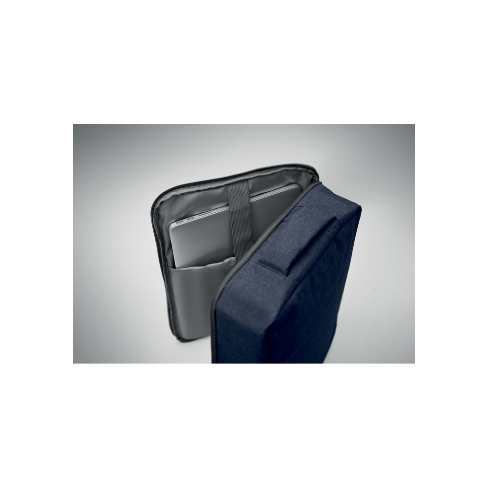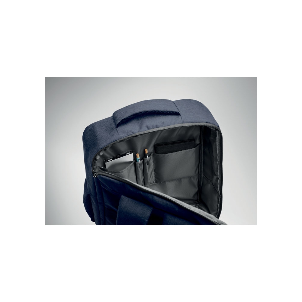 Artikel-Nr: OCBMO2305-85Schlanker 15'''' Laptop-Rucksack aus 300D RPET mit 210D RPET-Futter. Laptopfach, 2 Innentaschen, 2 Stiftfächer, gepolsterte Tragegriffen. Weich gepolsterte Rücken- und Schultergurte. Rückseitige Trolley-Halterung.