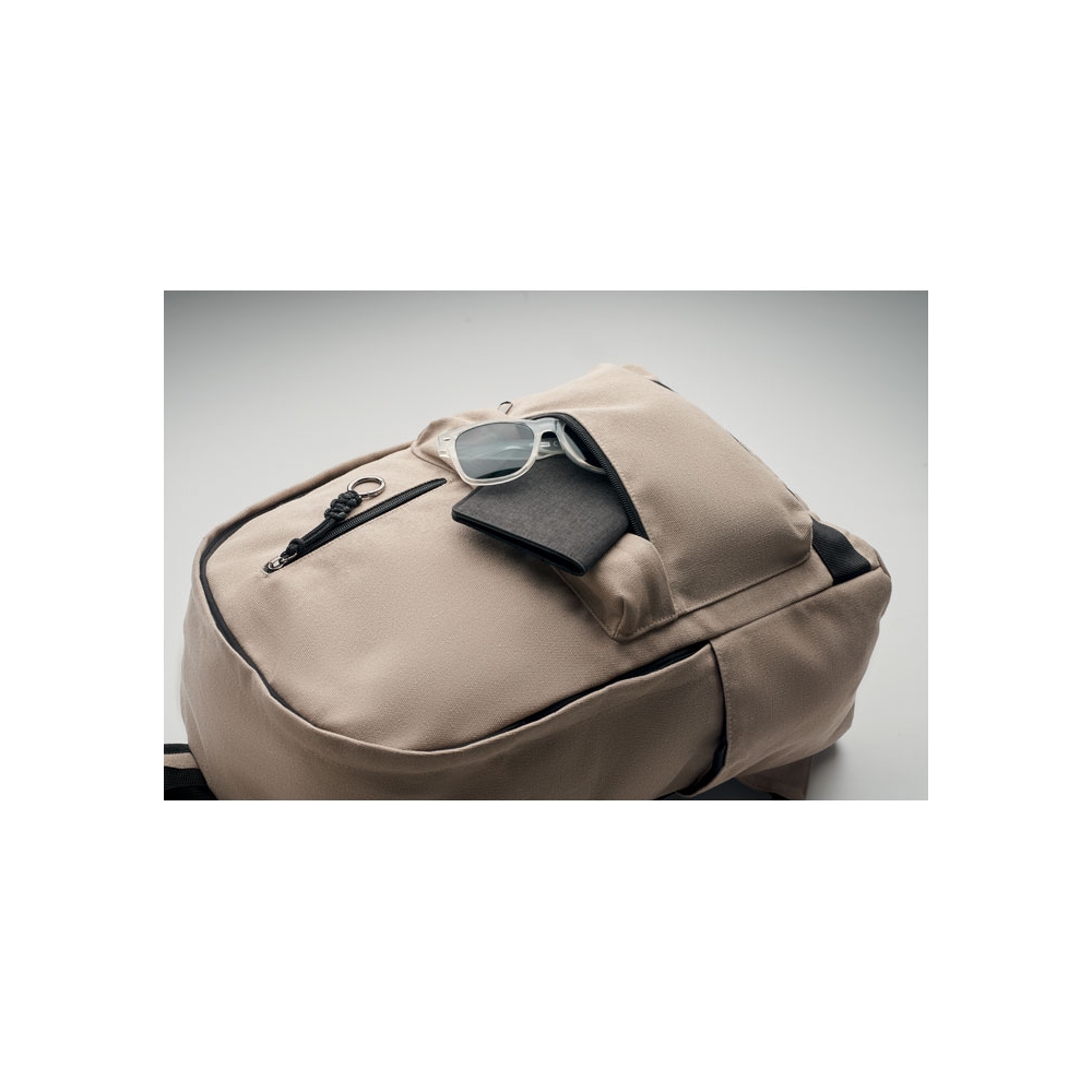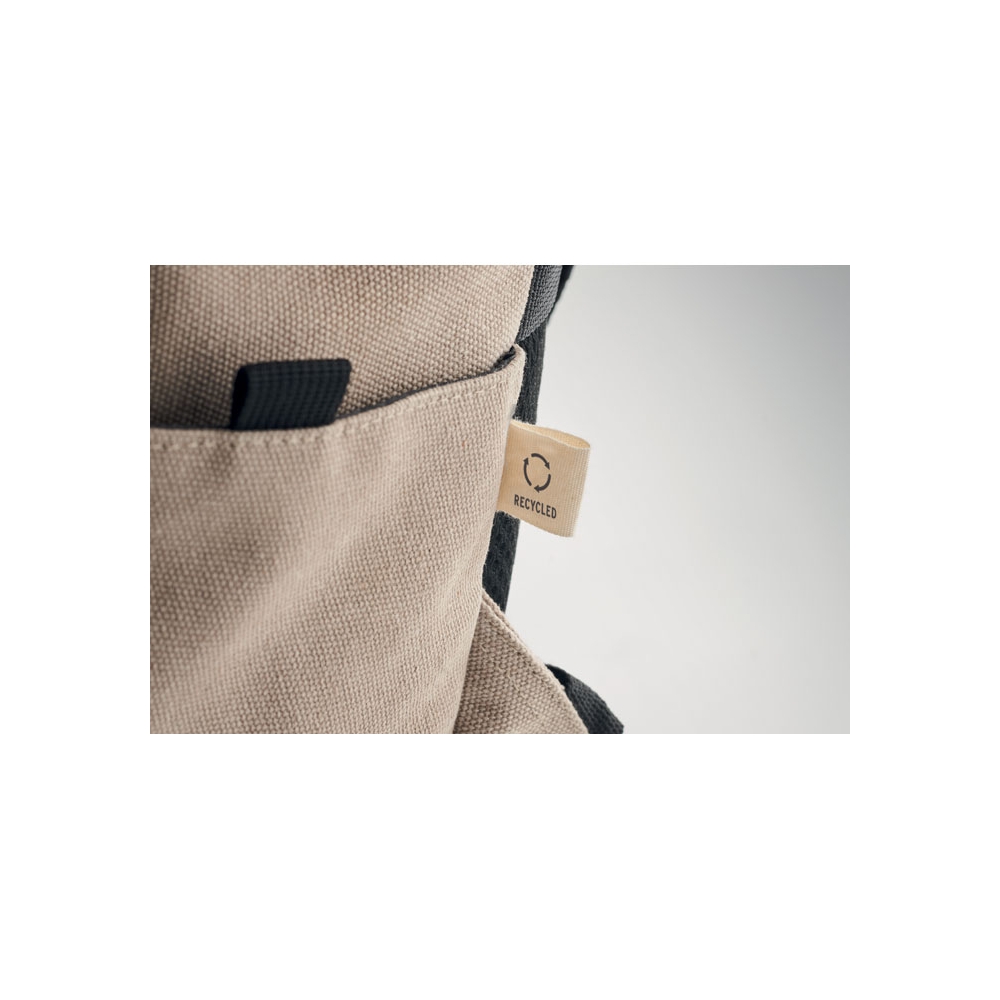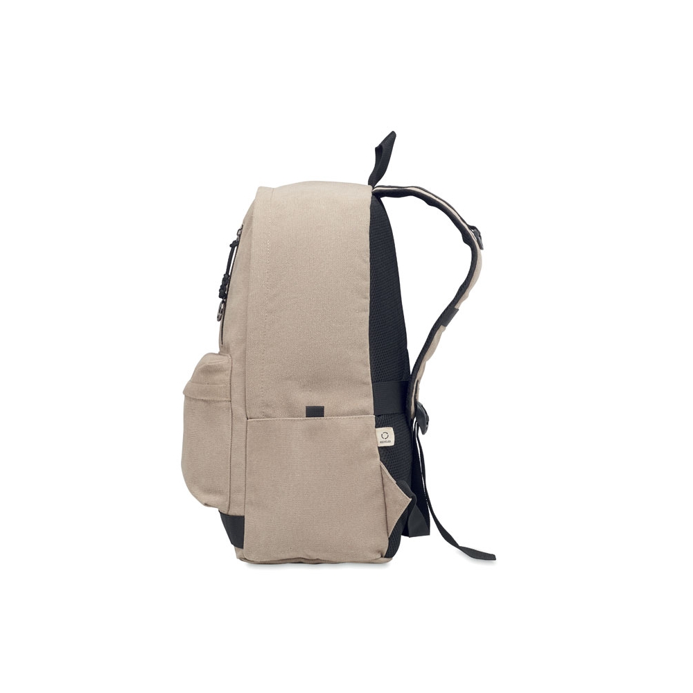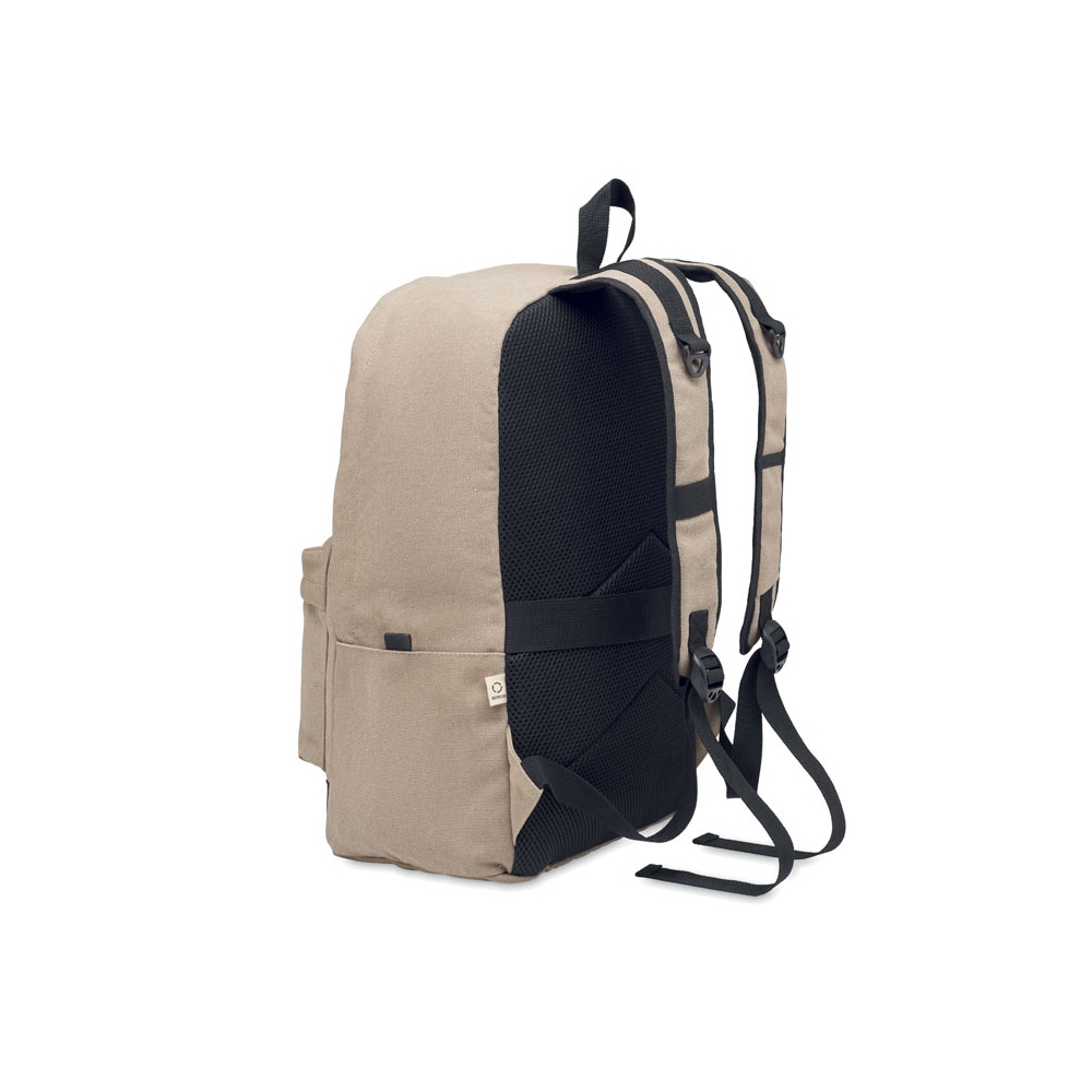 Artikel-Nr: OCBMO2391-6515" Laptop-Rucksack aus recycelter Pre-Consumer-Baumwolle. Große Fronttasche mit Reißverschluss und Laptop-Innenfach. Kleine Fronttasche mit Reißverschluss. Zwei seitliche Steckfächer. Rückseite, Boden und Schultergurte gepolstert. 450 g / m².