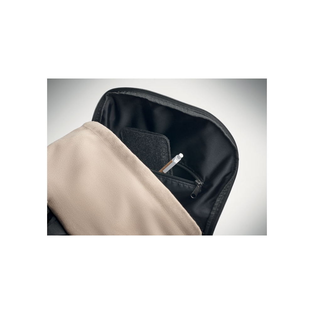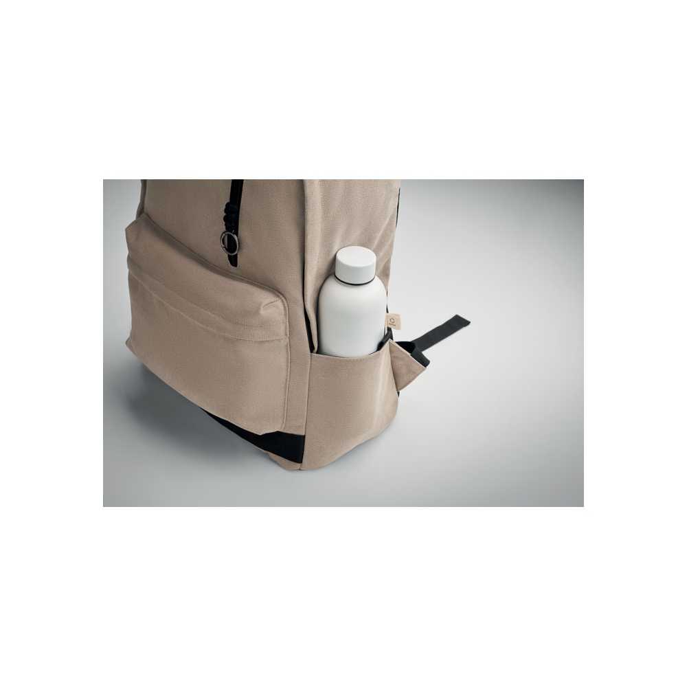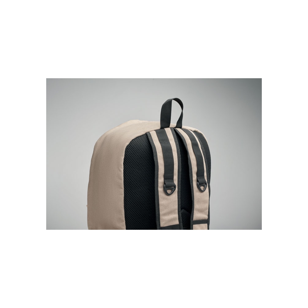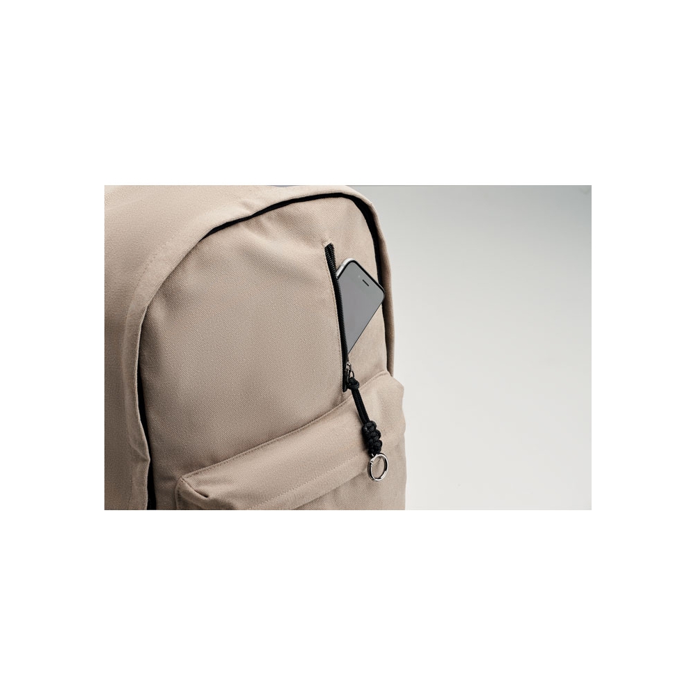 Artikel-Nr: OCBMO2391-6515" Laptop-Rucksack aus recycelter Pre-Consumer-Baumwolle. Große Fronttasche mit Reißverschluss und Laptop-Innenfach. Kleine Fronttasche mit Reißverschluss. Zwei seitliche Steckfächer. Rückseite, Boden und Schultergurte gepolstert. 450 g / m².