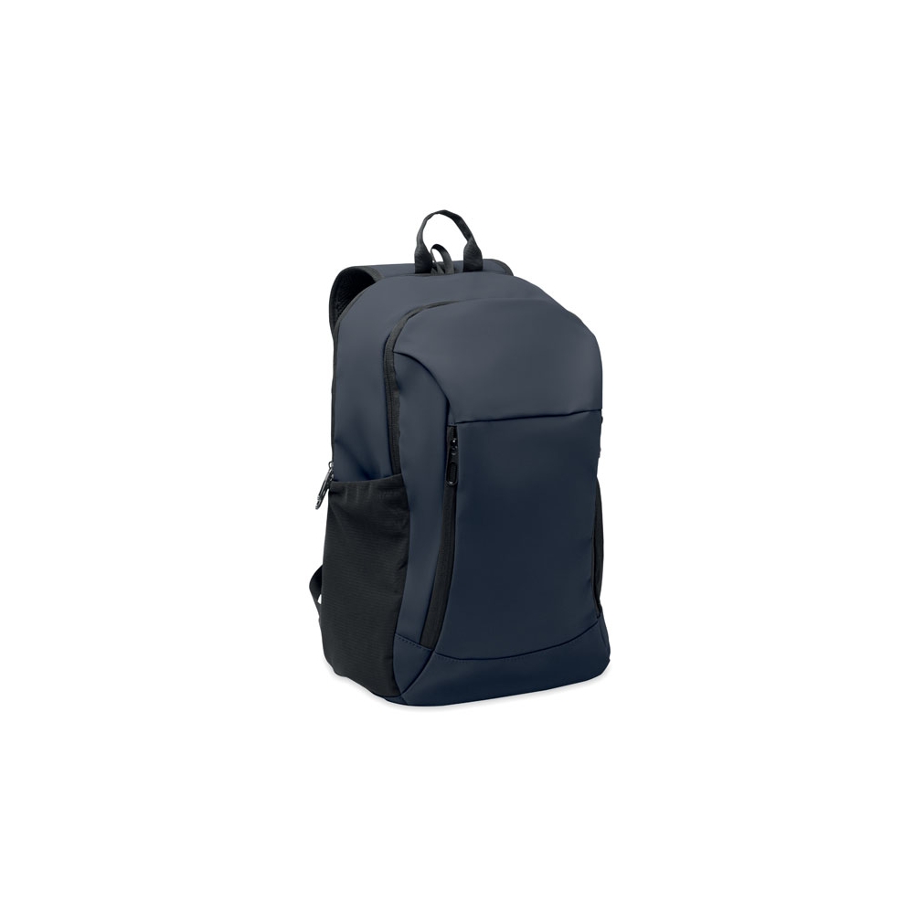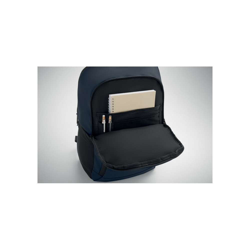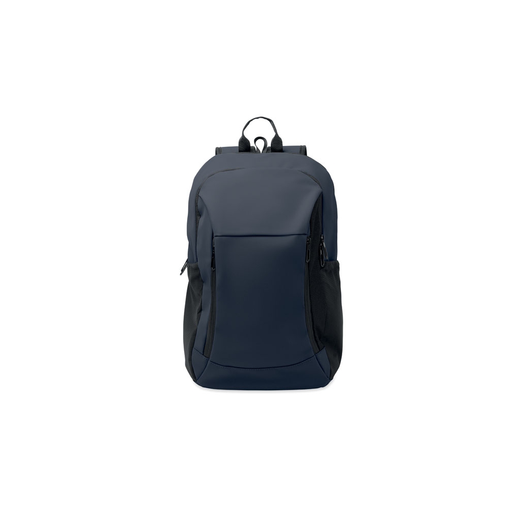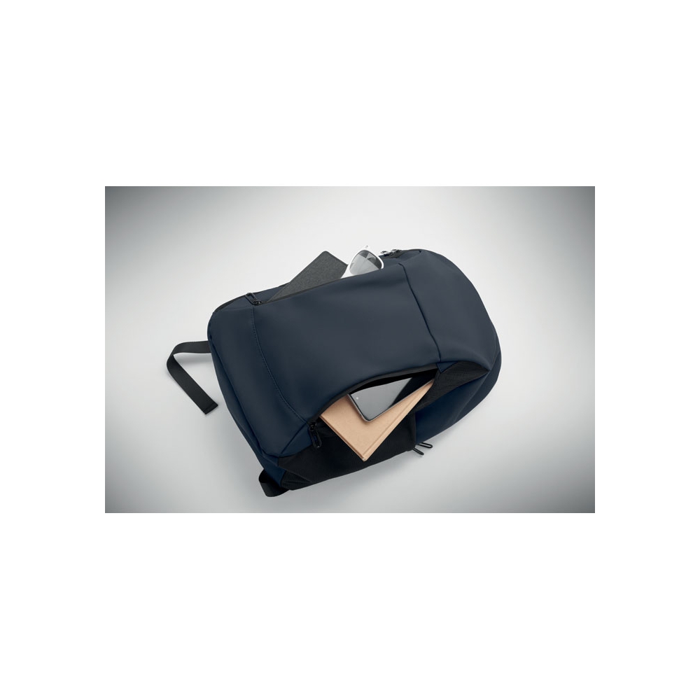Artikel-Nr: OCBMO2684-8515'' Laptop-Rucksack aus softem PU mit gepolstertem Rücken und verstecktem Hauptfach mit Reißverschluss. Reißverschlusstasche auf der Vorderseite, 2 seitliche Fronttaschen mit Reißverschluss und 2 seitliche Netztaschen. Mit 210D RPET-Futter.