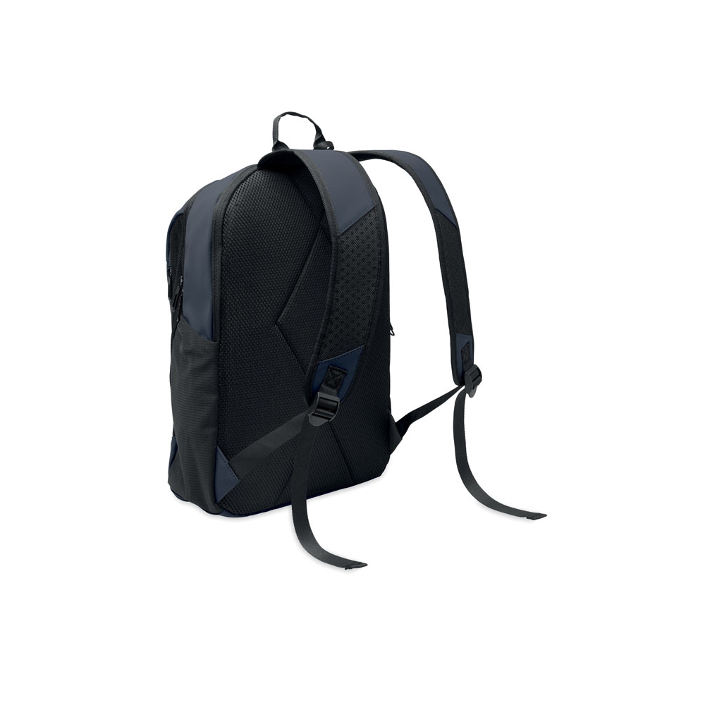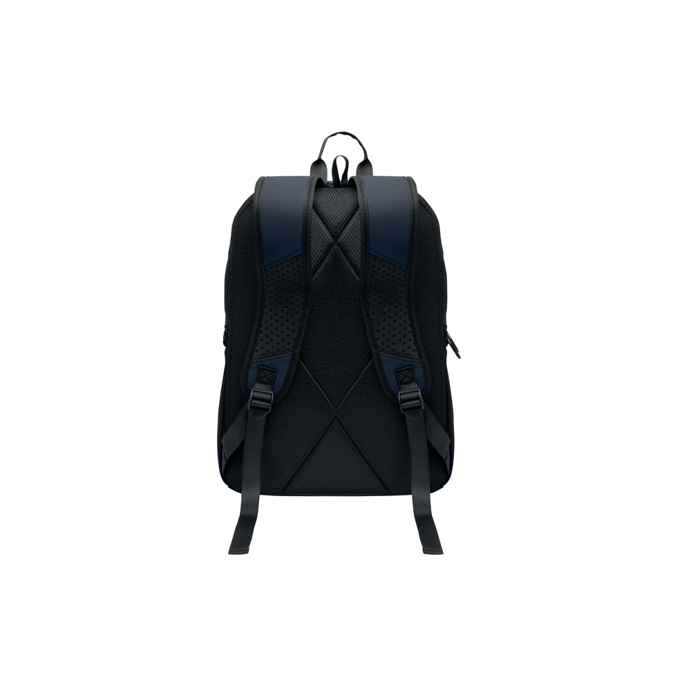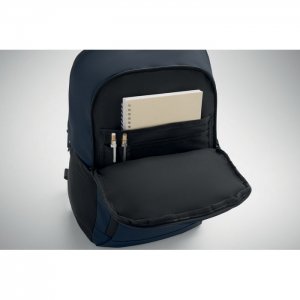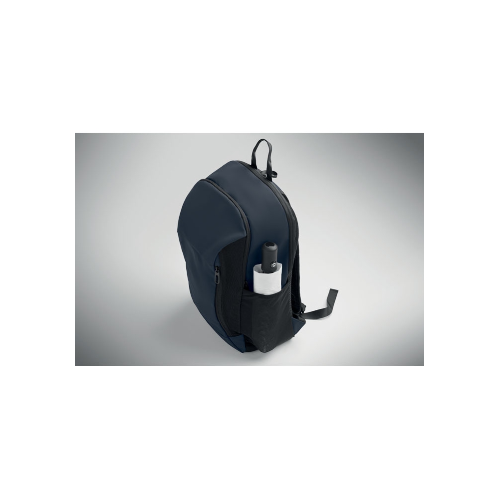 Artikel-Nr: OCBMO2684-8515'' Laptop-Rucksack aus softem PU mit gepolstertem Rücken und verstecktem Hauptfach mit Reißverschluss. Reißverschlusstasche auf der Vorderseite, 2 seitliche Fronttaschen mit Reißverschluss und 2 seitliche Netztaschen. Mit 210D RPET-Futter.