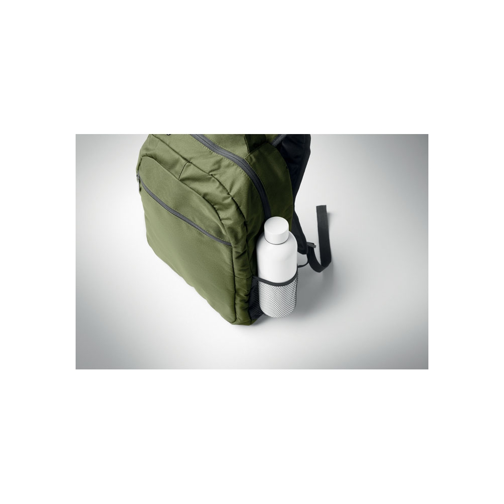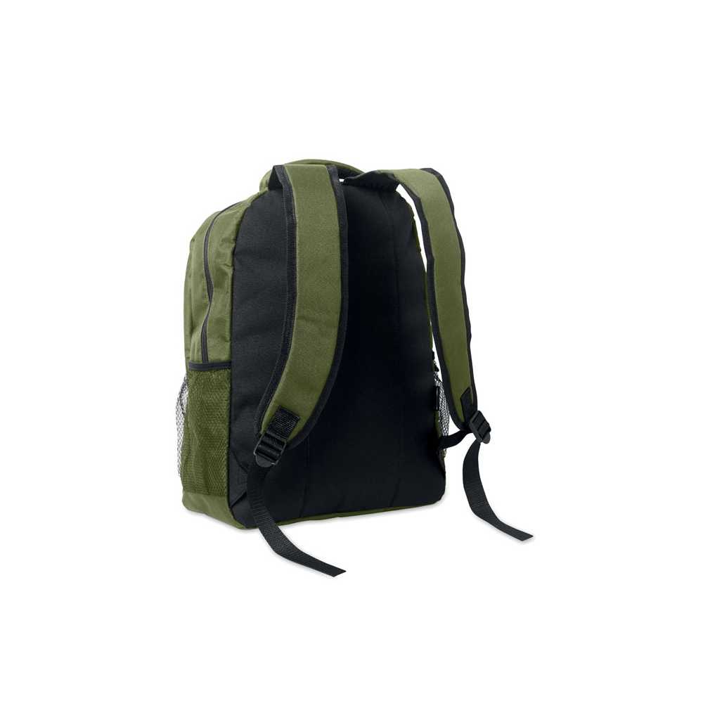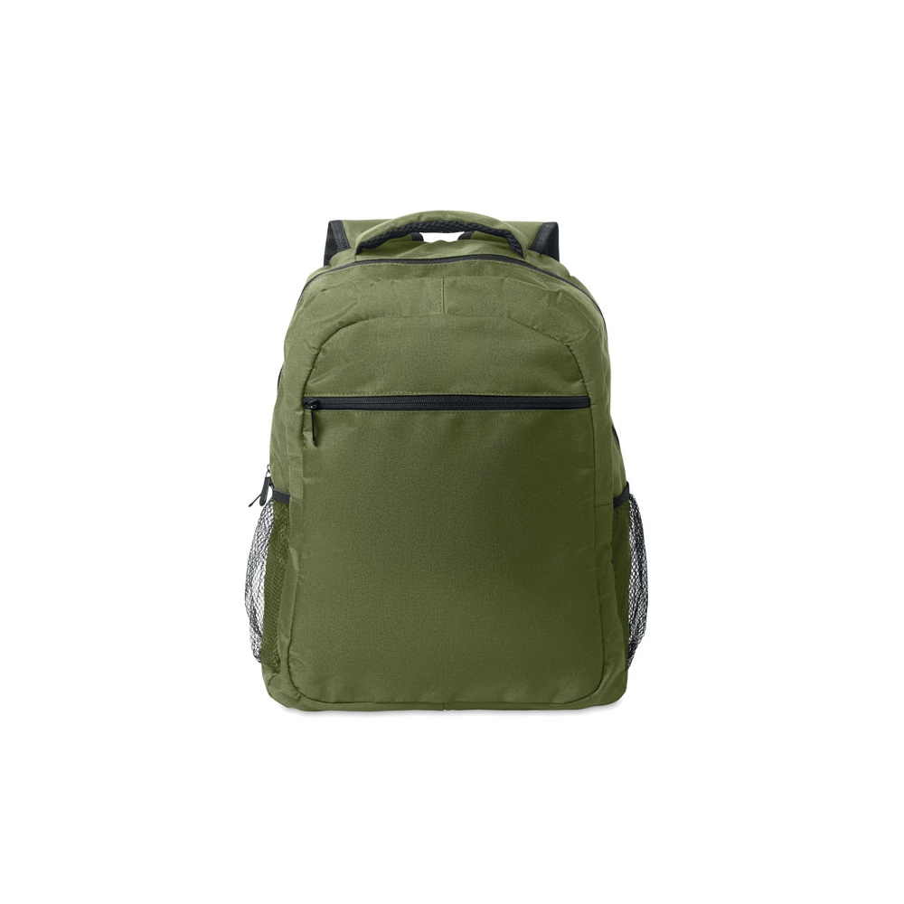 Artikel-Nr: OCBMO2559-4915'' Laptop-Rucksack aus 600D RPET-Polyester mit gepolstertem Laptopfach. Beidseitige Netztaschen und Reißverschlusstasche vorne.