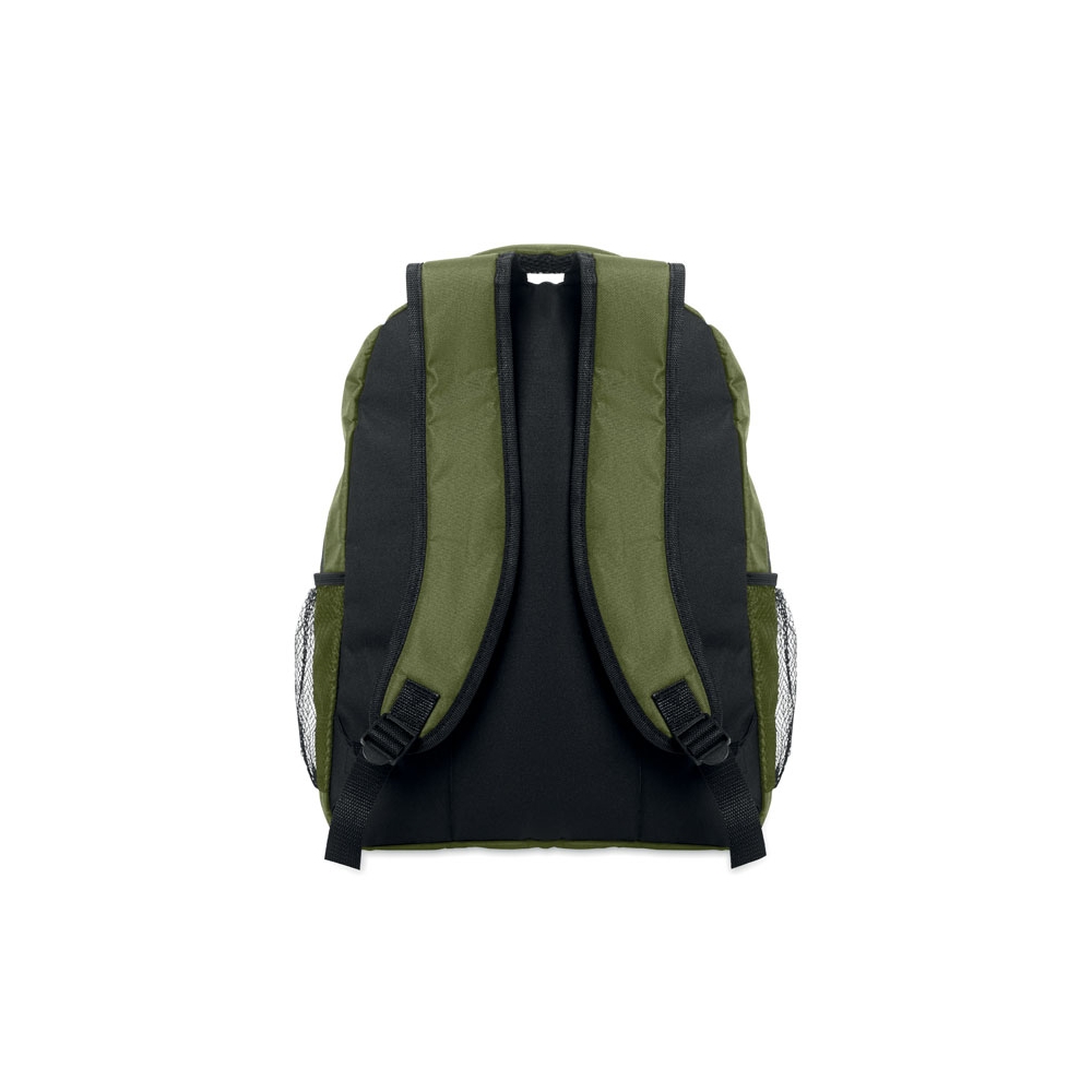Artikel-Nr: OCBMO2559-4915'' Laptop-Rucksack aus 600D RPET-Polyester mit gepolstertem Laptopfach. Beidseitige Netztaschen und Reißverschlusstasche vorne.