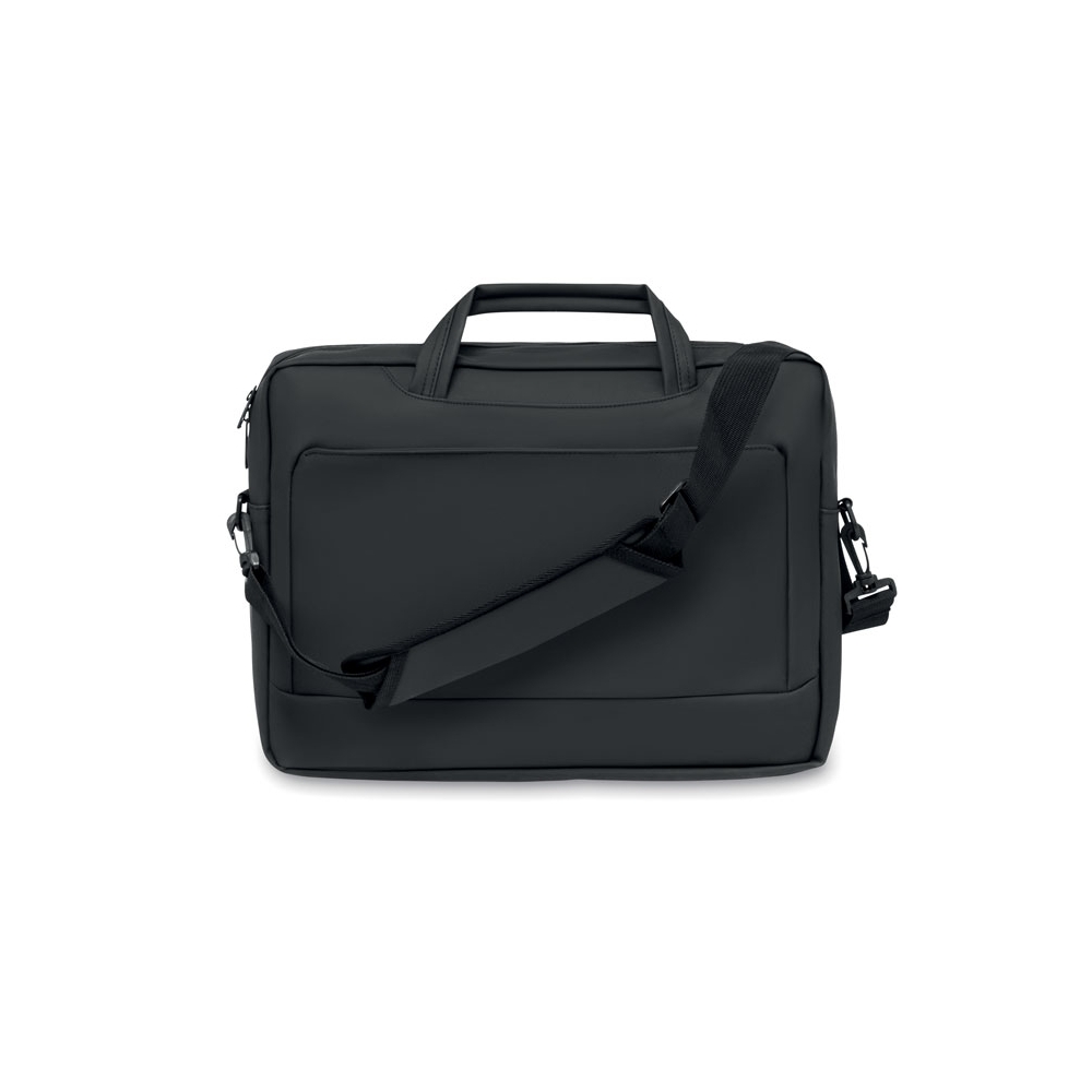 Artikel-Nr: OCBMO2512-0315'' Laptop Tasche aus weichem PU. Inkl. gepolstertes Laptop-Fach, Fronttasche mit Reißverschluss und diverse Fächer. Futter 210D RPET-Polyester. 2 Griffe, abnehmbarer und verstellbarer Schultergurt. Rückseitige Trolley-Halterung.