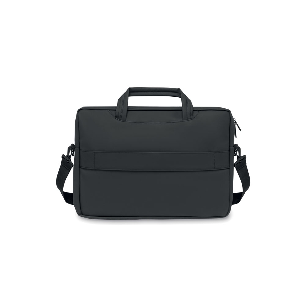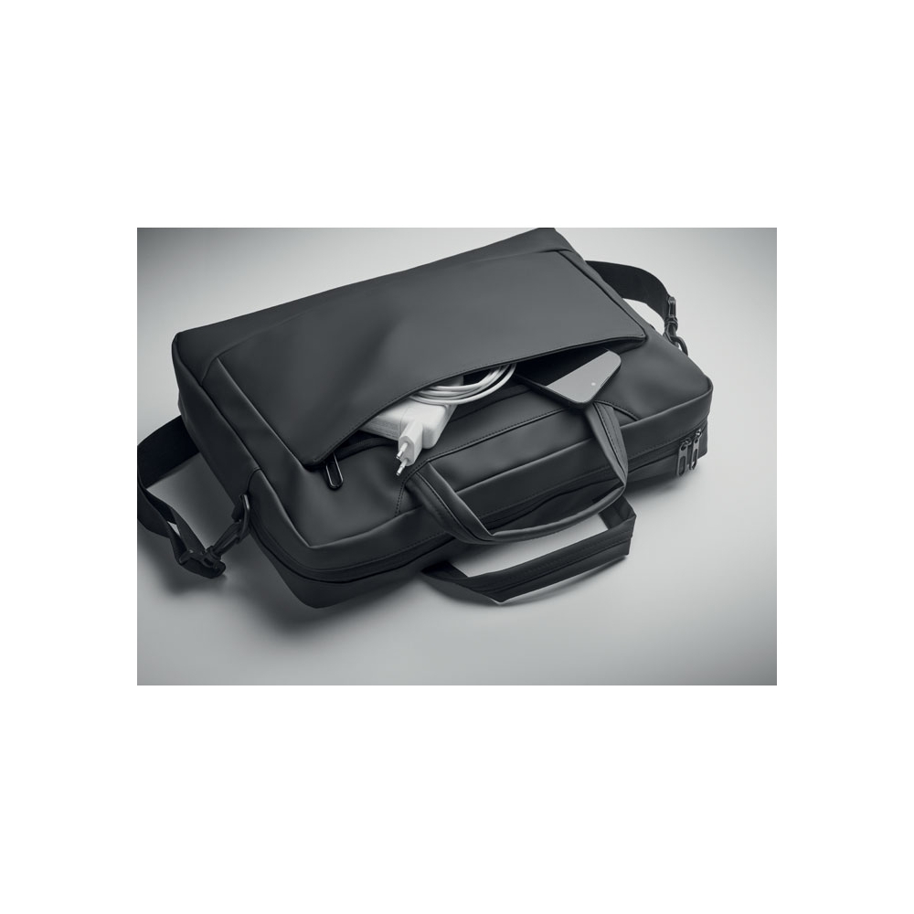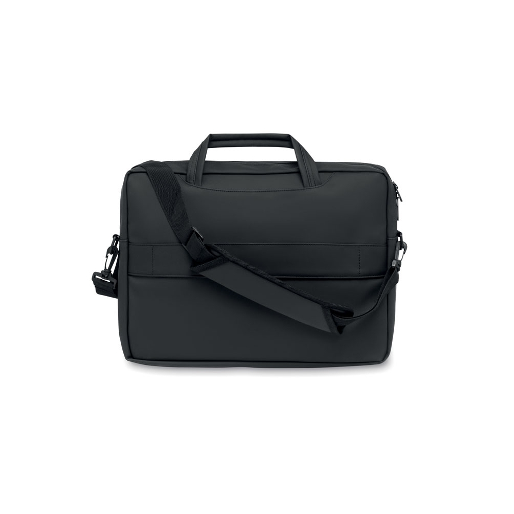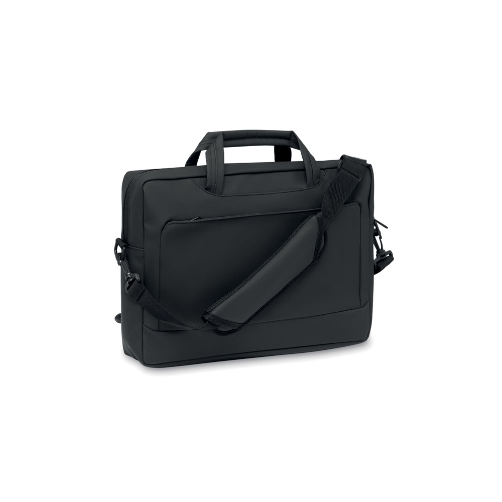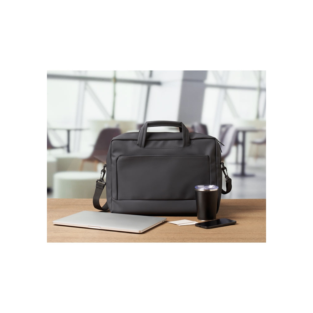 Artikel-Nr: OCBMO2512-0315'' Laptop Tasche aus weichem PU. Inkl. gepolstertes Laptop-Fach, Fronttasche mit Reißverschluss und diverse Fächer. Futter 210D RPET-Polyester. 2 Griffe, abnehmbarer und verstellbarer Schultergurt. Rückseitige Trolley-Halterung.
