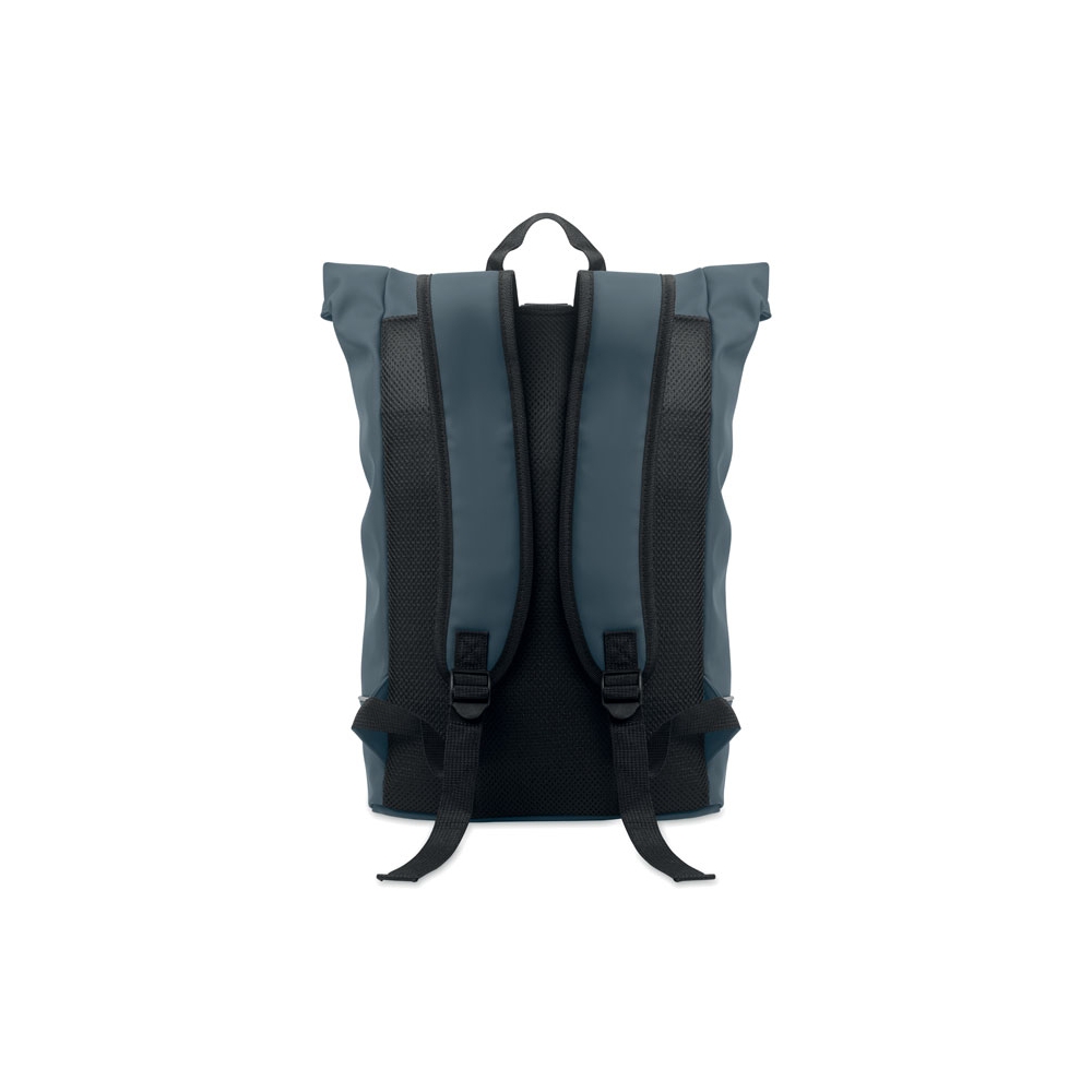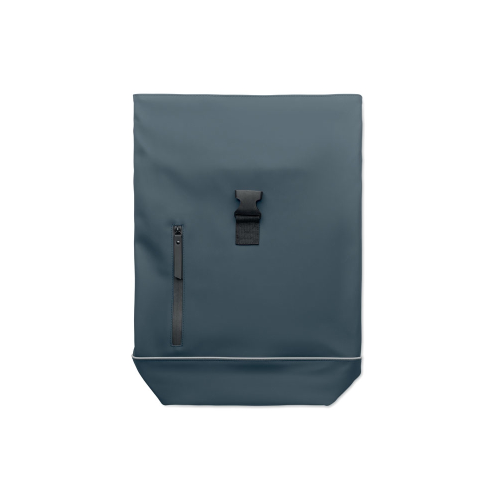 Artikel-Nr: OCBMO2581-8515'' Rolltop-Laptop-Rucksack aus weichem PU. Gepolsterter Rücken und verstärkter Boden mit reflektierenden Streifen. Wasserabweisende Fronttasche mit Reißverschluss. Futter aus 210D RPET-Polyester.