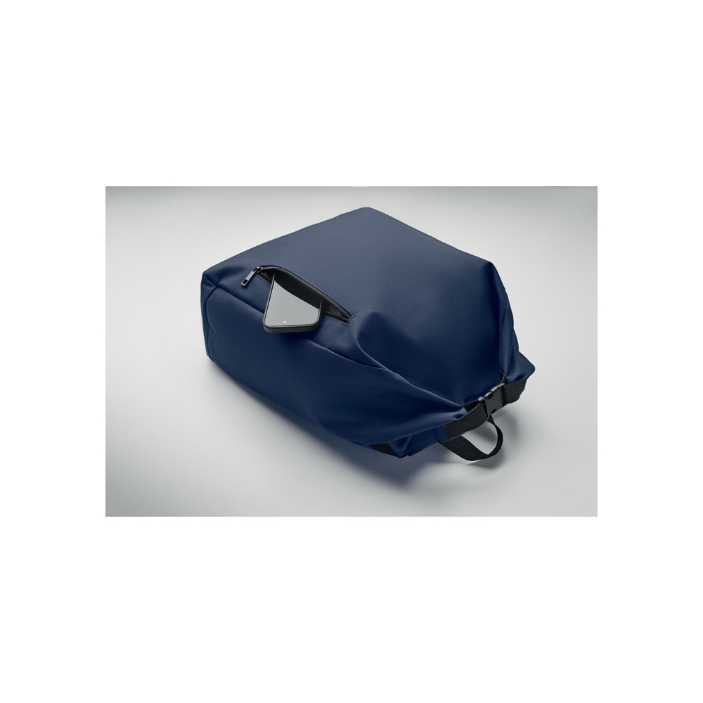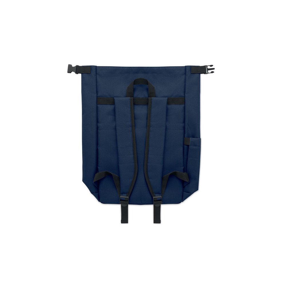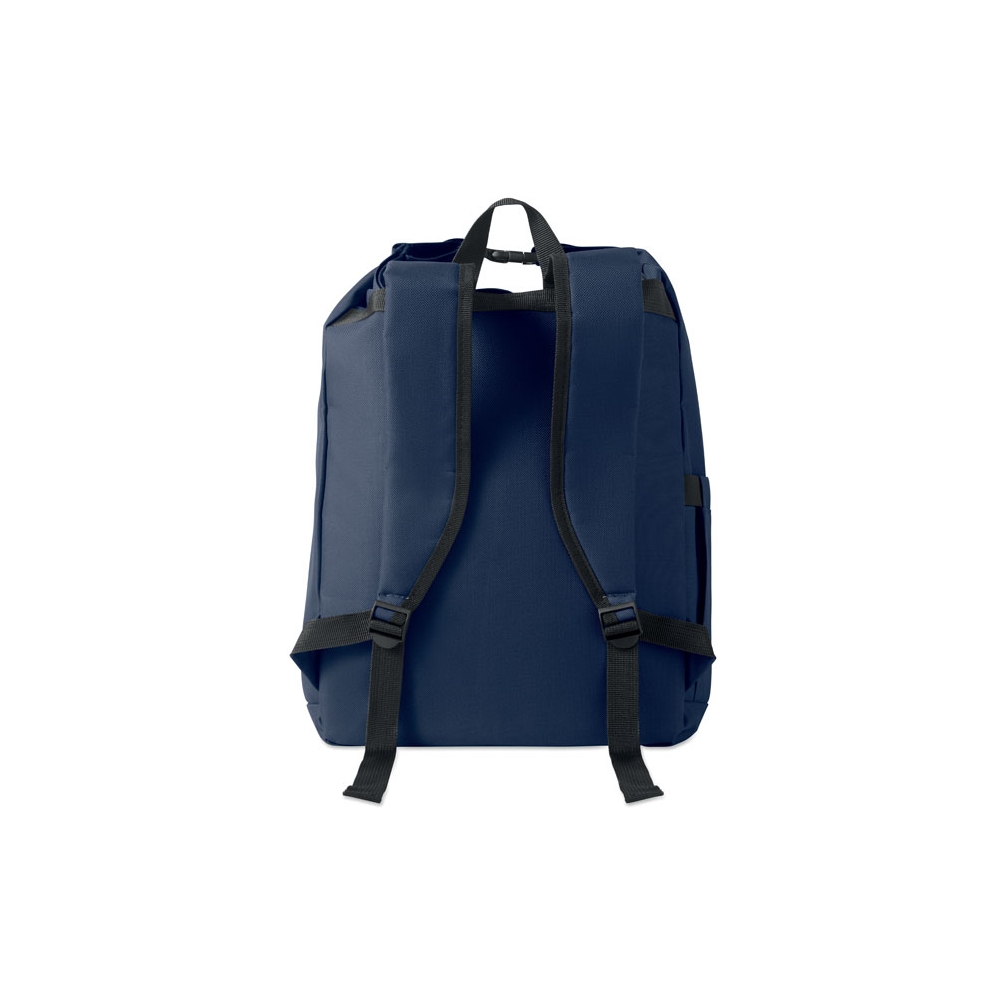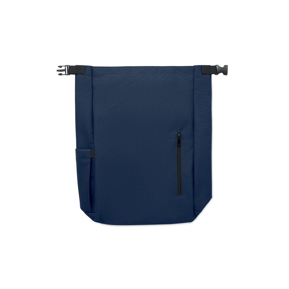 Artikel-Nr: OCBMO2969-8515'' Rolltop-Laptop-Rucksack aus 600D RPET-Polyester mit gepolstertem 210D RPET-Futter. Fronttasche mit Reißverschluss, elastische Seitentasche und verstellbare Schultergurte.