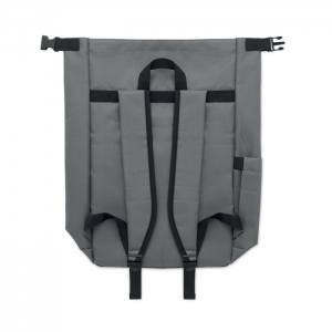 Artikel-Nr: OCBMO2969-1515'' Rolltop-Laptop-Rucksack aus 600D RPET-Polyester mit gepolstertem 210D RPET-Futter. Fronttasche mit Reißverschluss, elastische Seitentasche und verstellbare Schultergurte.