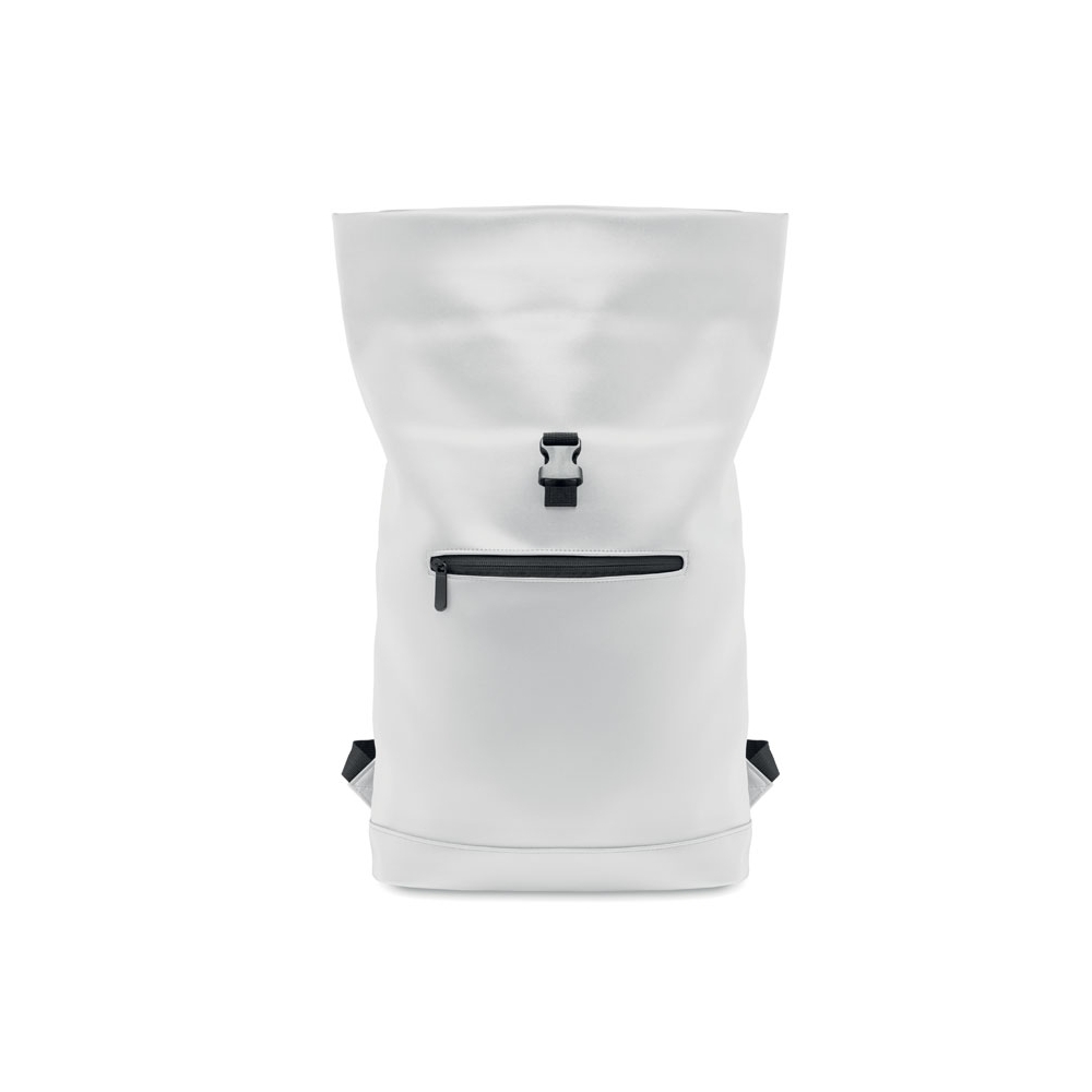 Artikel-Nr: OCBMO2230-06Rucksack mit Rollverschluss aus weichem PU. 15'''' Laptop Fach. Große Fronttasche mit Reißverschluss. Futter aus 210D RPET. Gepolsterter Rücken und verstärkter Boden.