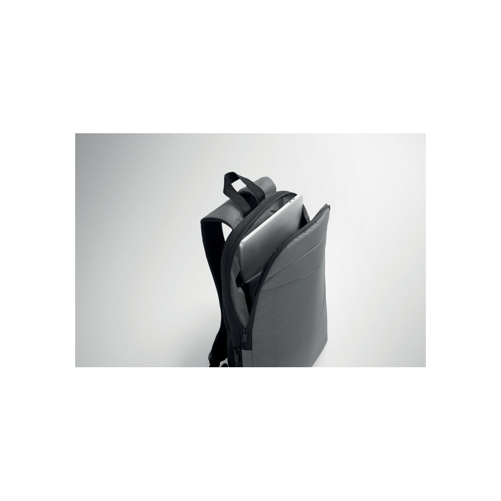Artikel-Nr: OCBMO2753-15Erweiterbarer 16'' Laptop-Rucksack aus 600D RPET Polyester mit PU-Beschichtung. Gepolstertes Laptopfach, versteckte Reißverschlusstasche, Frontfach, Netzrücken und Trolley-Halterung. RPET-Polyesterfutter.