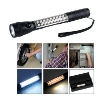 Artikel-Nr: 57383370SW-0018 LED Arbeits- und Freizeitleuchte mit Taschenleuchtenfunktion. Führende LED Technik gepaart mit Funktionalität. Stableuchte / Taschenleuchte 7 LED (20 Lumen), Arbeitsleuchte18 LED (50 Lumen) und Signalleuchte 6 LED (17 Lumen). Mit dieser Kombination unterschiedlicher Lichtquellen leuchten Sie bequem eine größere Fläche aus. Ideal für Reparaturen, handwerkliche Arbeiten, Autopannen, beim Camping, in der Freizeit oder als Notlicht. Die Leuchte kann in drei verschiedene Leucht-Modi geschalten werden: 7 LED, 18 LED sowie eine Signalfunktion mit 6 LED. Die Leuchte ist aus hochwertigem Aluminium gefertigt und mit einem superstarken Magnet am Ende der Leuchte versehen. So lässt sich die Stableuchte problemlos und sicher an der Autokarosserie bzw. an allen metallischen Oberflächen befestigen. Die praktische Trageschlaufe garantiert, dass Sie die Leuchte immer fest im Griff haben.3 AAA Batterien und hochwertige Karton-Geschenkverpackung inkl.