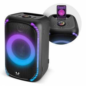 Artikel-Nr: ART49737N0002Der Party Loud M-Lautsprecher ist zweifellos das Highlight jeder Party. Mit einem pulsierenden Bass, der sich zur Musik bewegt, beeindruckt dieser Lautsprecher - genau 20 Stunden lang. Koppeln Sie Ihren Lautsprecher mit einem weiteren Party Loud M-Lautsprecher, um die Lautstärke zu verdoppeln, und wechseln Sie zwischen 6 Lichtoptionen für ein noch aufregenderes Erlebnis. Leistungsstark 20 Stunden Wiedergabezeit Bass Boost Double Fun Mode (koppeln Sie 2 Party Loud M-Lautsprecher) Multicolor-Lichtshow. Wasserdicht Verschiedene kabelgebundene Anschlussmöglichkeiten