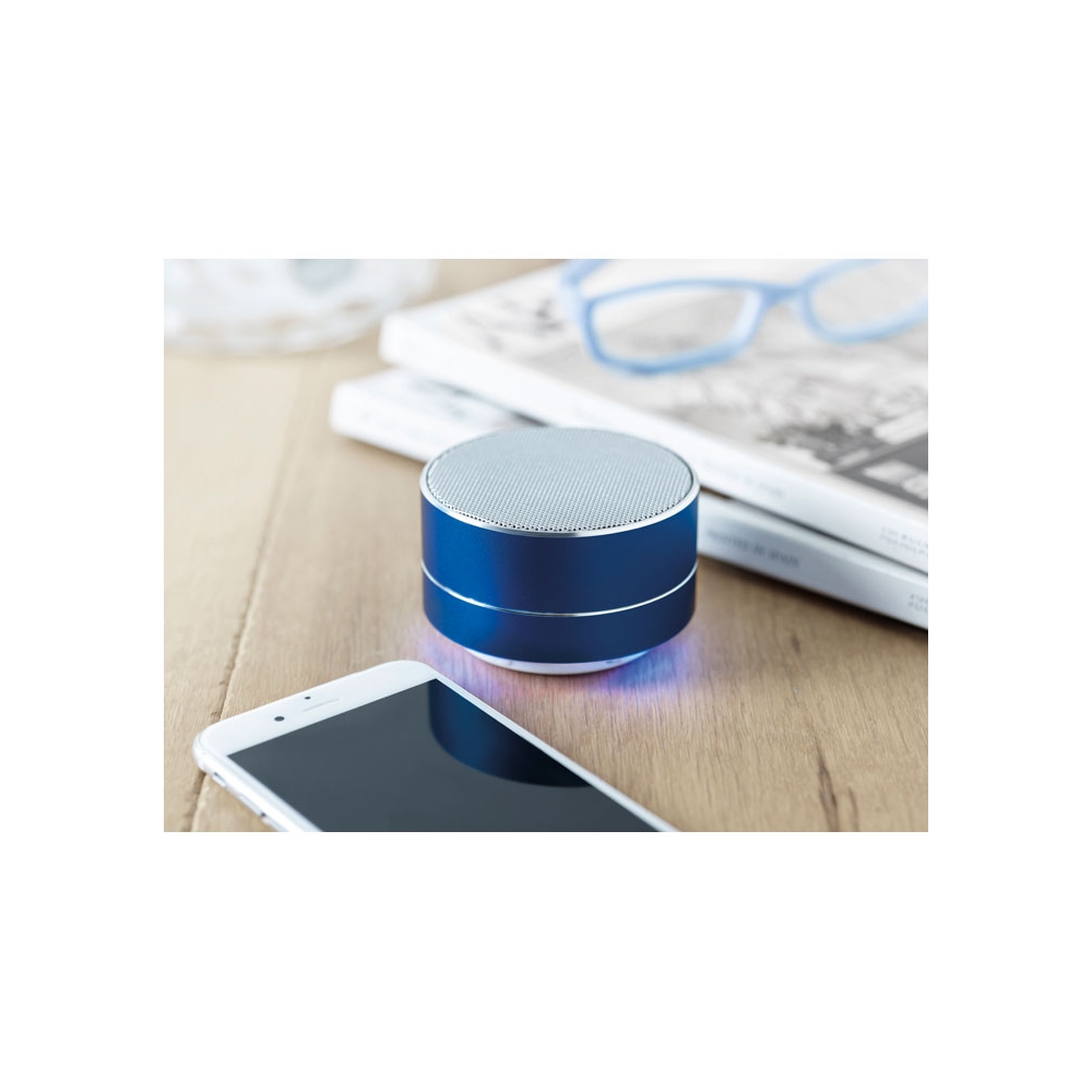 Artikel-Nr: OCBMO9155-37Aluminium 2.1 wireless Lautsprecher. Beleuchtete Unterseite. Inkl. Mikro-USB-Kabel und wieder aufladbare Li-on 450mAh Batterie. Ausgangsleistung: 3W, 4 Ohm und 5V.