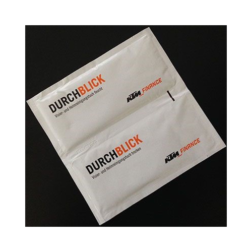 Artikel-Nr: WScheiben_TuchJeweils ein feuchtes sowie ein trockenes Tuch für die professionelle Helm- und Visier-Reinigung im Duo-Pack. ( - auch für die Glasreinigung geeignet.)