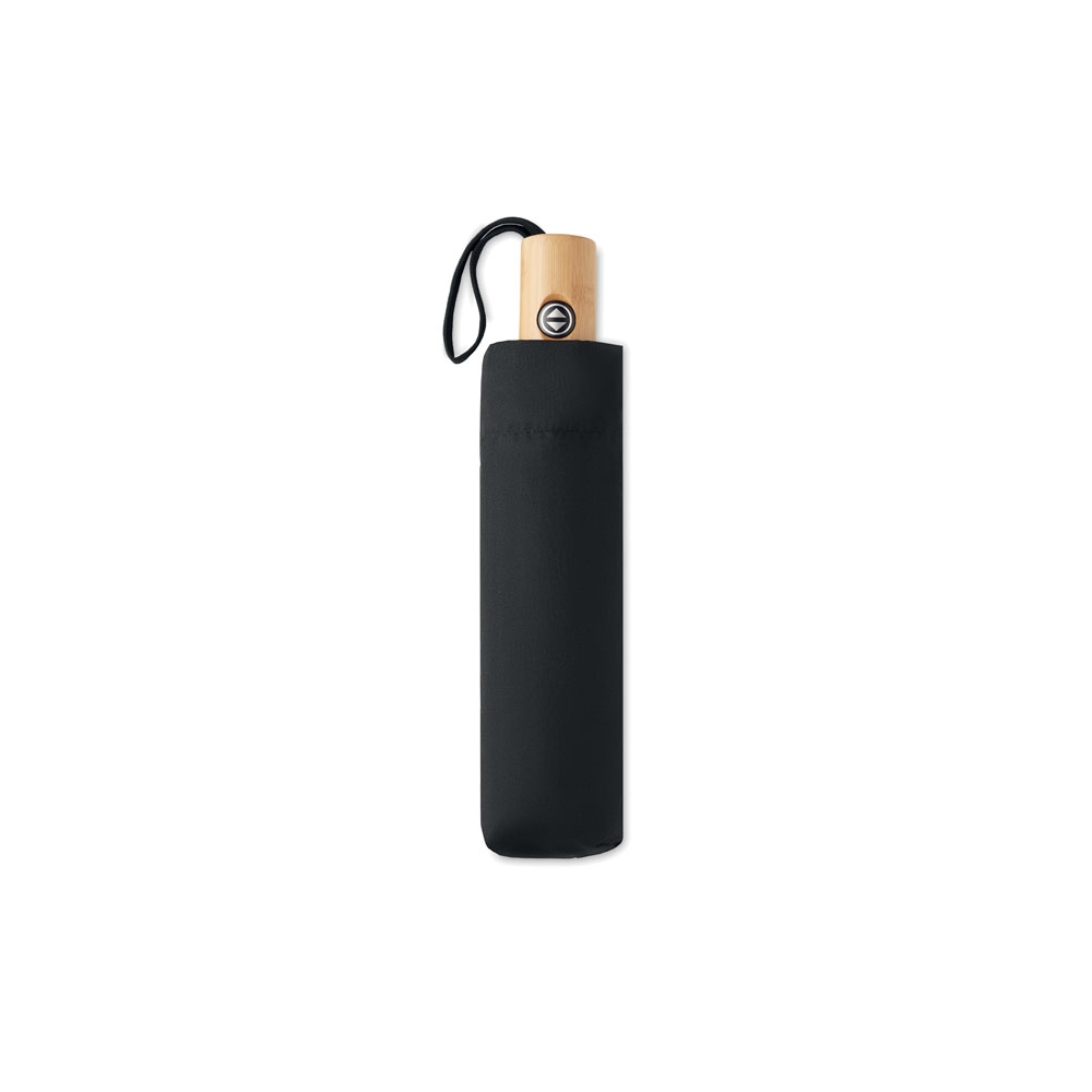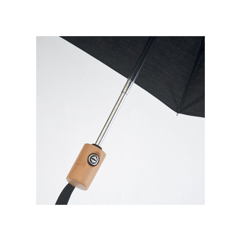Artikel-Nr: OCBMO2092-0321'' Regenschirm aus 190T-Polycotton (70% Polyester, 30% Baumwolle). Stock und Spitzen aus Aluminium, Stangen aus schwarz überzogenem Fiberglas. Griff aus Bambus. 2fach gefaltet. Passende Schirmhülle. Automatische Öffnung und Schließung.