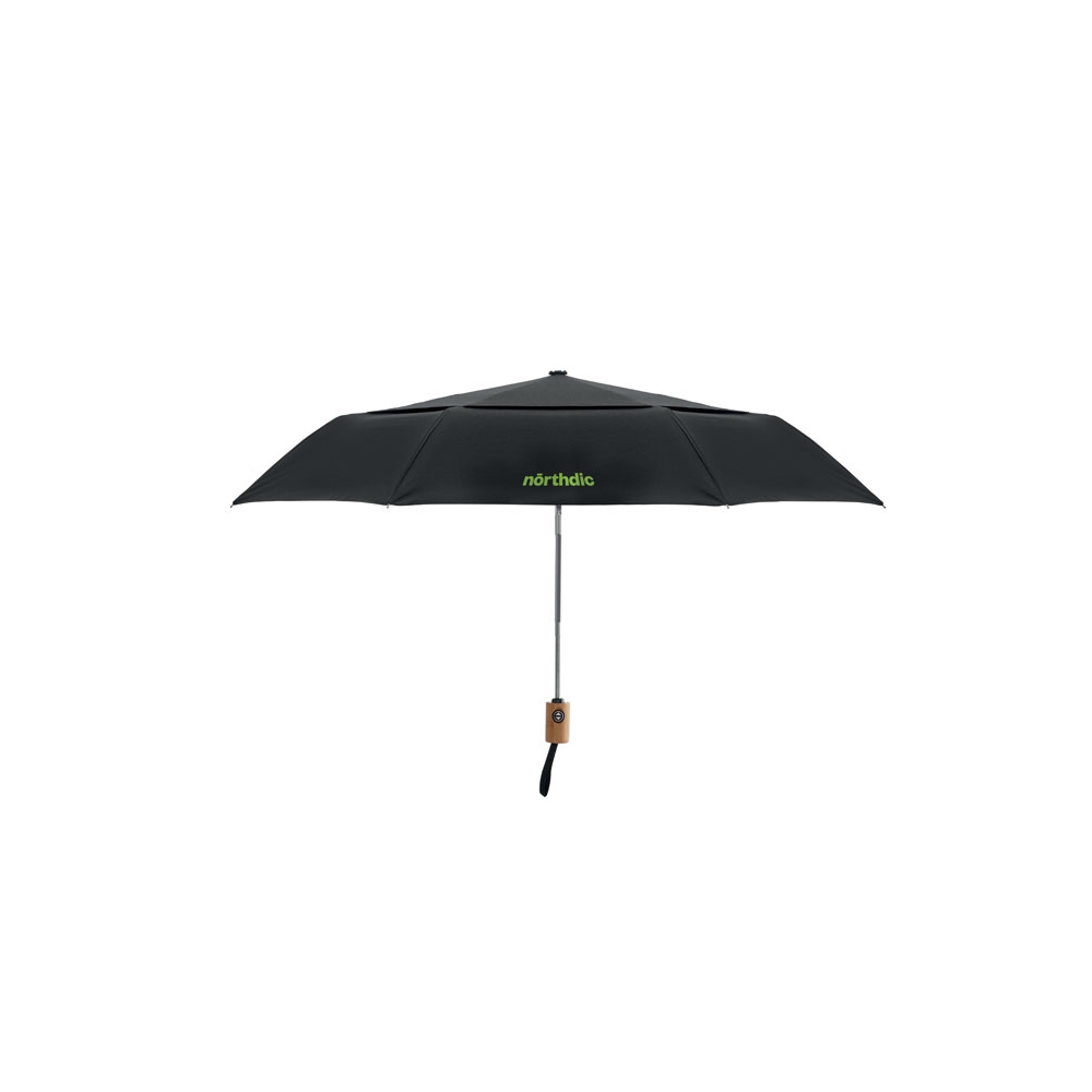 Artikel-Nr: OCBMO2092-0321'' Regenschirm aus 190T-Polycotton (70% Polyester, 30% Baumwolle). Stock und Spitzen aus Aluminium, Stangen aus schwarz überzogenem Fiberglas. Griff aus Bambus. 2fach gefaltet. Passende Schirmhülle. Automatische Öffnung und Schließung.