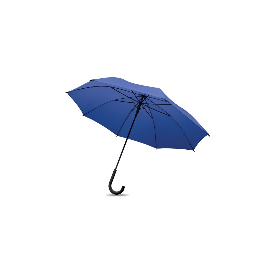 Artikel-Nr: OCBMO2693-3723'' Regenschirm aus 190T Pongee. Stock aus schwarz überzogenem Metall und Stangen aus Fiberglas. Krone und Spitzen aus Kunststoff. Gebogener Griff aus gummiertem PP. Automatische Öffnung, manuelle Schließung.