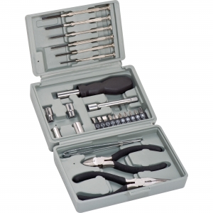 Artikel-Nr: MCM880020725 teiliger Werkzeugkoffer. Das Hartschalenetui ist faltbar und daher platzsparend. Damit haben Sie immer das richtige Werkzeug zur Hand. Wir lasern Ihr Logo auf die rechteckige Fläche an der Außenseite.