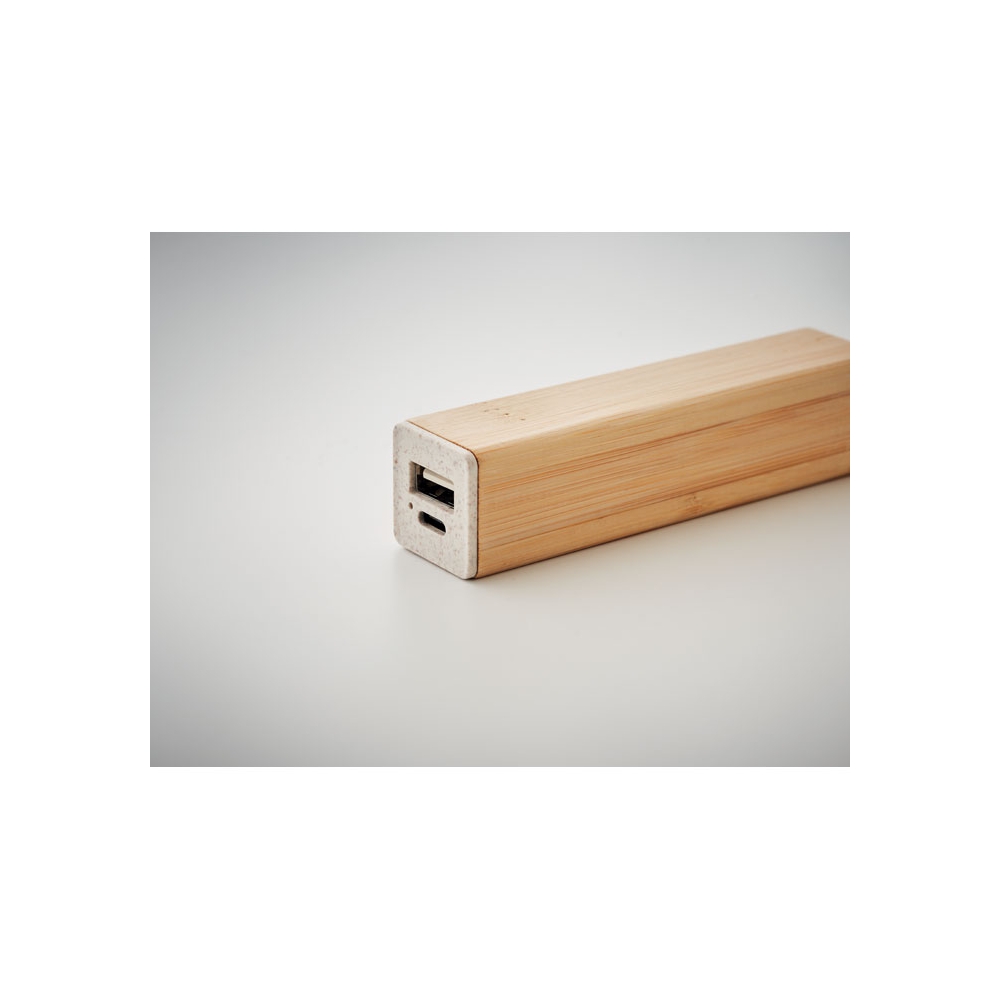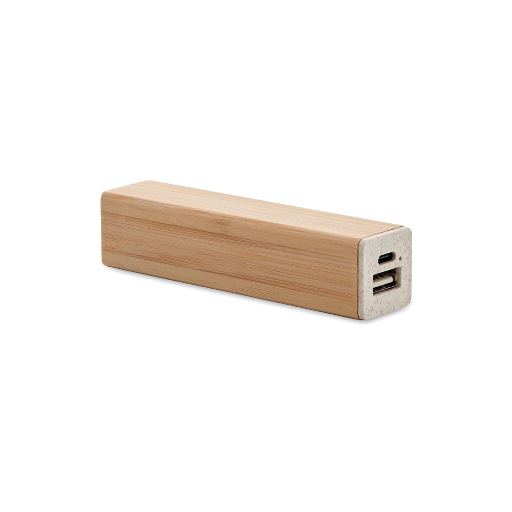 Artikel-Nr: OCBMO2342-40Powerbank 2600 mAh im Gehäuse aus Bambus. Geeignet zum Betrieb von Smartphones. Ausgangsstrom DC5V/1A. Inkl. USB Typ-C-Ladekabel mit Typ-A- Adapter. Eingang / Ausgang: USB Typ-C.