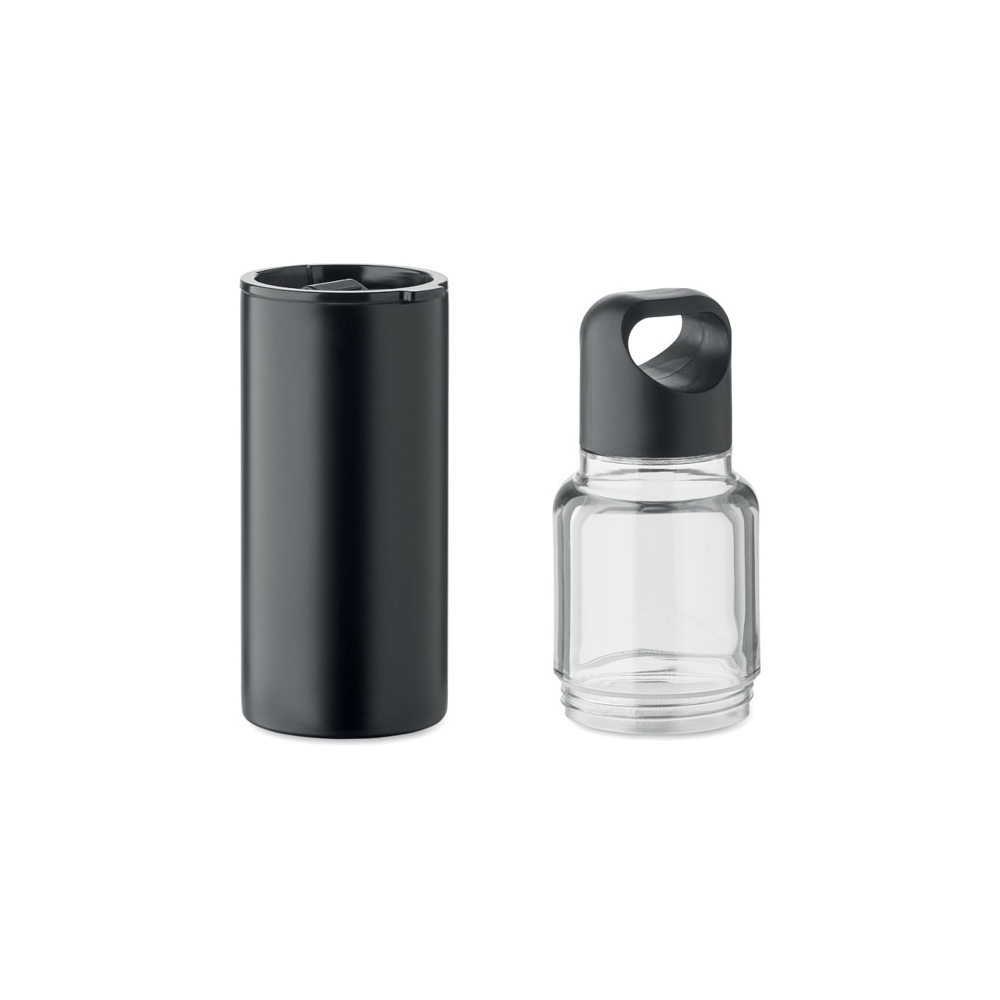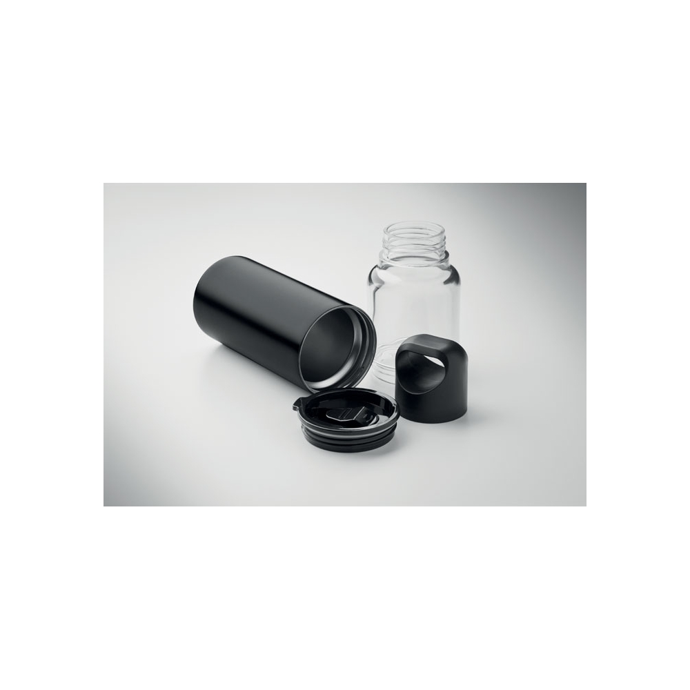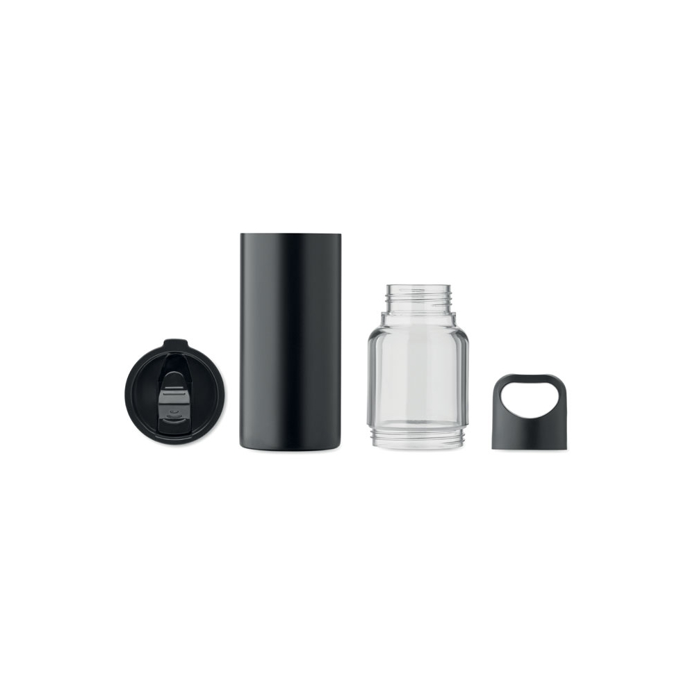 Artikel-Nr: OCBMO2789-032in1 Flasche aus Tritan mit doppelwandigem Trinkbecher aus recyceltem Edelstahl (90 % recycelter Edelstahl und 10 % Edelstahl). 2 Deckel aus PP-Material. Füllmenge insgesamt: 610 ml, Becher 350 ml.