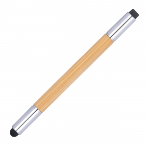 Artikel-Nr: MCM13874132in1 Bambusschreibgerät bestehend aus einem blau schreibenden Kugelschreiber, Touchfunktion, einer radierbaren endlos Mine und einem passenden Radiergummi. Die Werbung wird auf das Schreibgerät graviert.