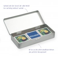 3 bedruckte M-Plätzchen / -Pralinen in Metallbox