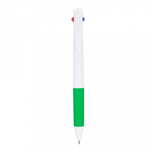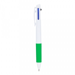 Artikel-Nr: ART87855N01313-farbiger Kugelschreiber mit Griffzone und Schlüsselband. Die Schreibfarben sind Blau, Schwarz und Rot.