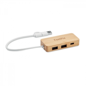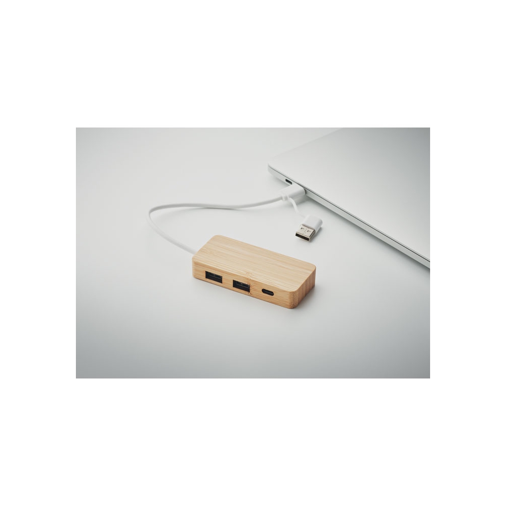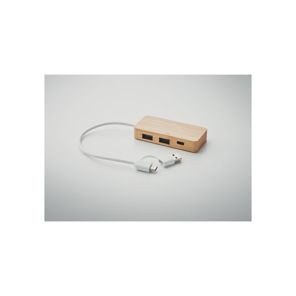 Artikel-Nr: OCBMO2143-403 Port USB-C / A-Hub im Gehäuse aus Bambus. Ausgang: 2 x Typ-A und 1 x Typ-C. Eingang: 2-in-1 Typ-C & Typ-A. Kabellänge: 20 cm.