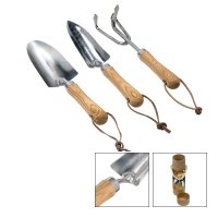 Artikel-Nr: 57383620HO-00Handgeschmiedetes und beinah unverwüstliches Gartenwerkzeug Set für bequemes Arbeiten im Grünen. Die Griffe der Gartengeräte sind mit Eschenholz eingefasst und alle Metallteile sind aus rostfreiem Edelstahl 2Cr13 gefertigt: Handschaufel, Pflanzschaufel mit praktischer Skalierung der Loch- oder Pflanztiefe und Handharke. Am Griff befindet sich jeweils ein Lederband zum Aufhängen der Geräte. Vorteile von Gartengeräten aus Edelstahl: sie korrodieren nicht, der Erde bleibt nicht am Gerät kleben und die Schaufel schneidet einfach durch den Boden fast ohne Widerstand. Naturkarton-Verpackung inkl.