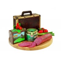 Artikel-Nr: 7980007Ein Stück Salami 1a, weiß, 300 g, ein Glas gekochte Mettwurst im Glas, 250 g, Spitzenqualität, ein Paket Vollkornbrot, 500 g, extra saftig und aus vollem Korn. Bruchsicher konfektioniert im Kartonkoffer mit Tragegriff und im Umkarton versandfertig verpackt