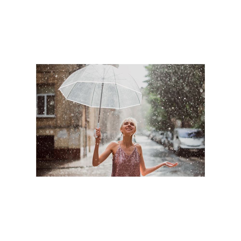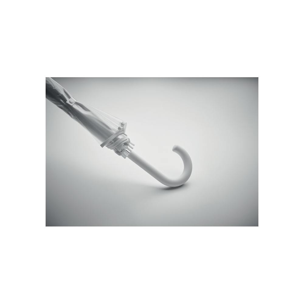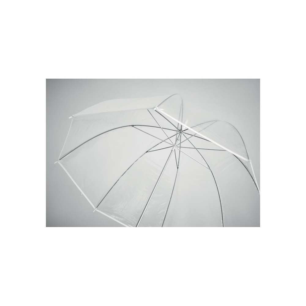 Artikel-Nr: OCBMO2167-0623'''' Regenschirm aus POE. Farbige Paspel. 1 Segment aus Polyester dient als Druckbereich. Verchromter Stock, Stangen aus Fiberglas, Spitzen aus Kunststoff. Gebogener, gummierter Griff. Manuelle Öffnung und Schließung.