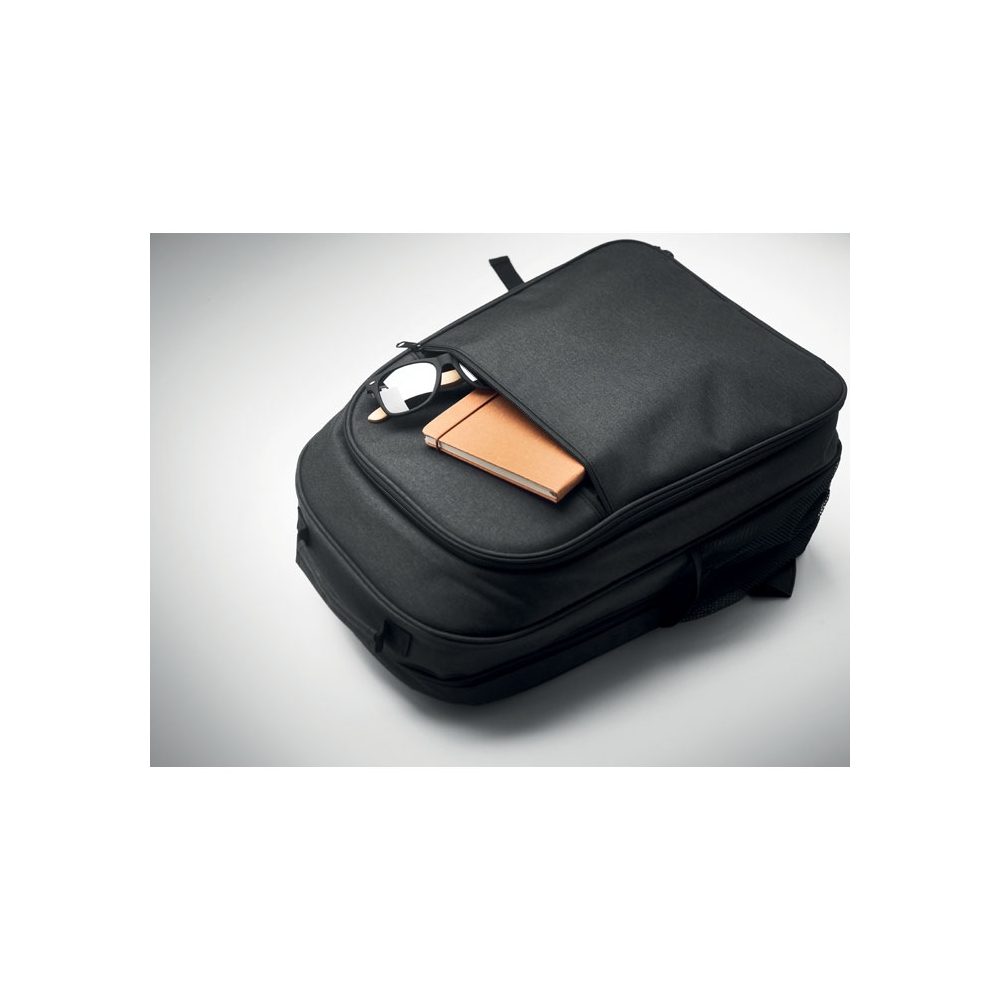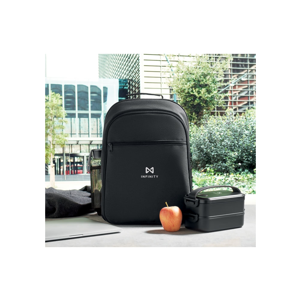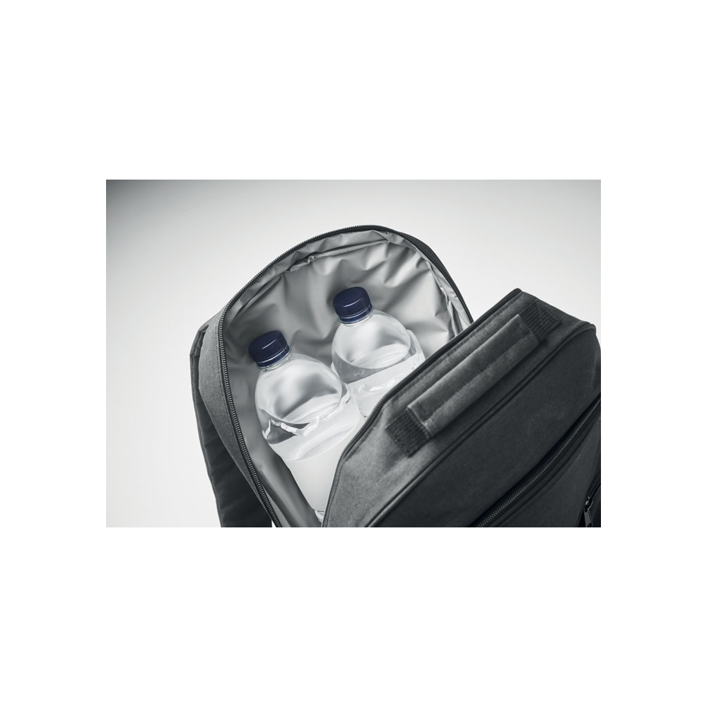 Artikel-Nr: OCBMO2125-03300D RPET Rucksack. 15'''' Laptopfach und großes Kühlfach. Fronttasche mit Reißverschluss und seitlichem Netzfach.