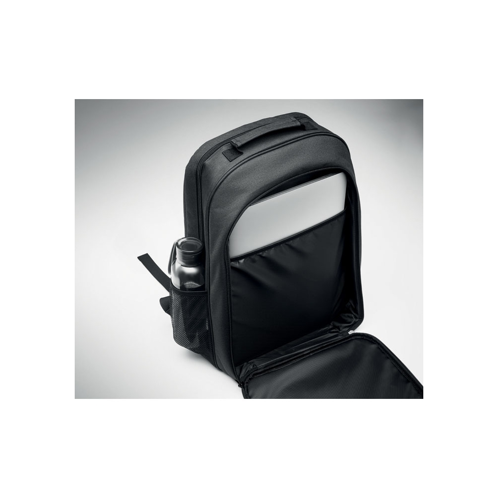 Artikel-Nr: OCBMO2125-03300D RPET Rucksack. 15'''' Laptopfach und großes Kühlfach. Fronttasche mit Reißverschluss und seitlichem Netzfach.