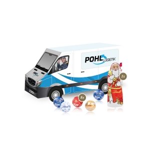 3D Präsent "Transporter" mit Lindt Minis und Nikolaus