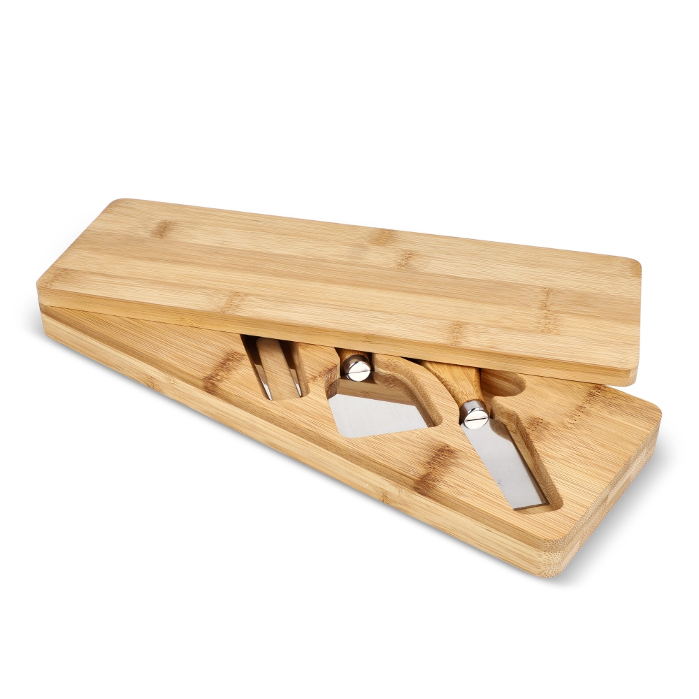 Artikel-Nr: ART94494N0094Dieses Käsemesserset wird in einer Bambusbox geliefert, die gleichzeitig als Servierbrett dient. Das Set besteht aus drei Messern, die für verschiedene Käsesorten geeignet sind und eine praktische Handhabung mit einer eleganten Präsentation verbinden.