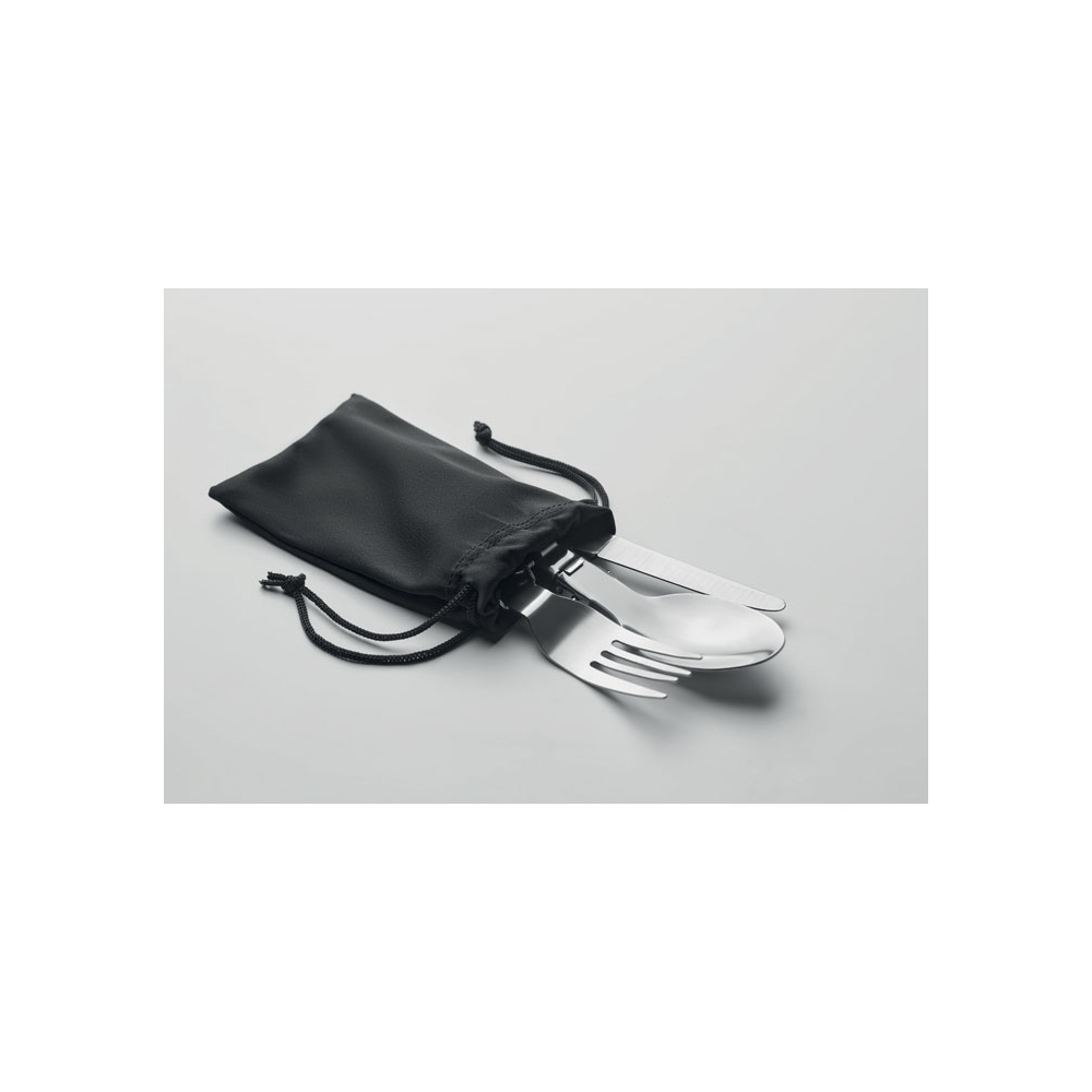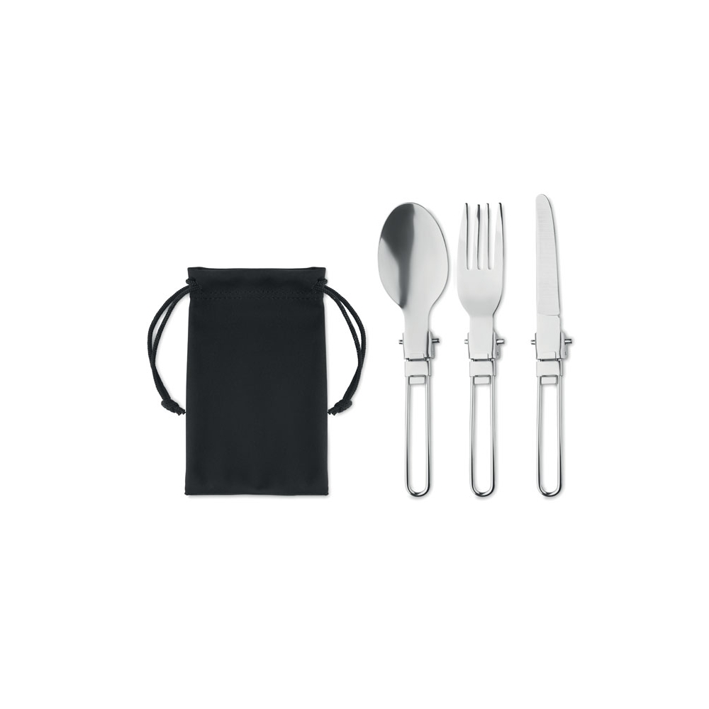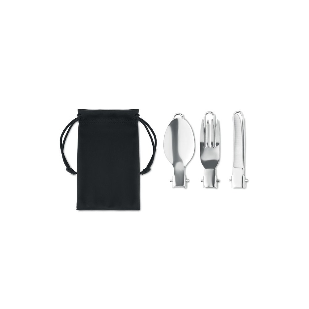 Artikel-Nr: OCBMO6359-03Klappbares 3teiliges Campingbesteck aus Edelstahl. Bestehend aus Messer, Gabel und Löffel. Verpackt im RPET-Beutel.