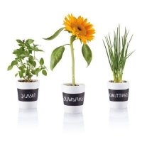 Artikel-Nr: WXP460P262733Set aus 3 Keramik Kräutertöpfchen mit Tafelfeld zur Beschriftung, inkl. Kreide, Substrat und Samen für Petersilie, Basilikum und Schnittlauch sowie Sonnenblumensamen als kleines Extra. Maße der Töpfchen: 9,5 x 10cm