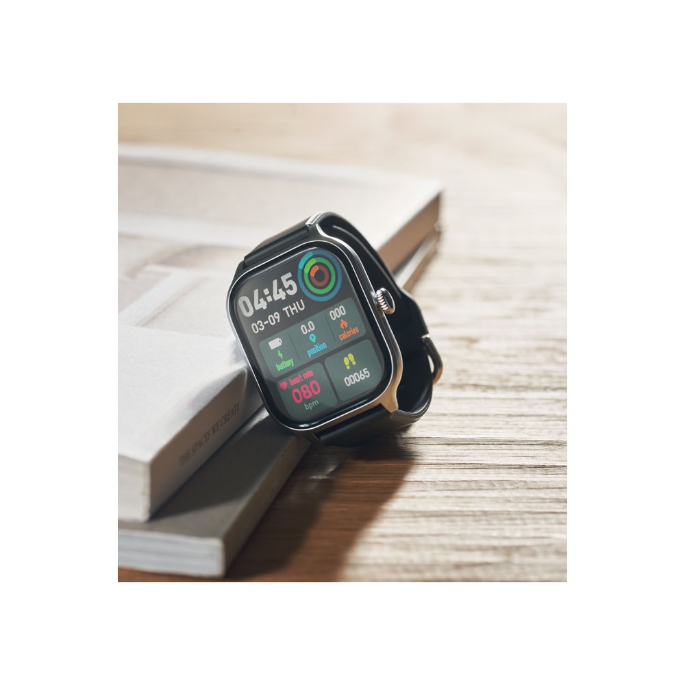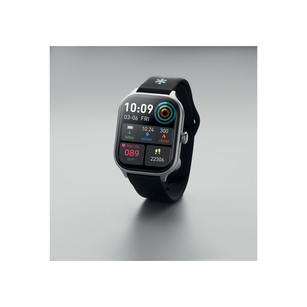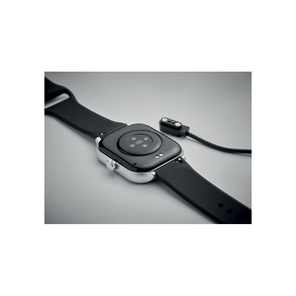 Artikel-Nr: OCBMO2271-145.4 wireless Fitness Smart Watch aus Zinklegierung mit Silikonarmband. 2,01'''' Touch-LCD-Display. Wiederaufladbarer Li-Pol-Akku 180 mAh. Der Download der kostenlosen App (Hryfine) ist erforderlich. Erhältlich für iOS und Android.