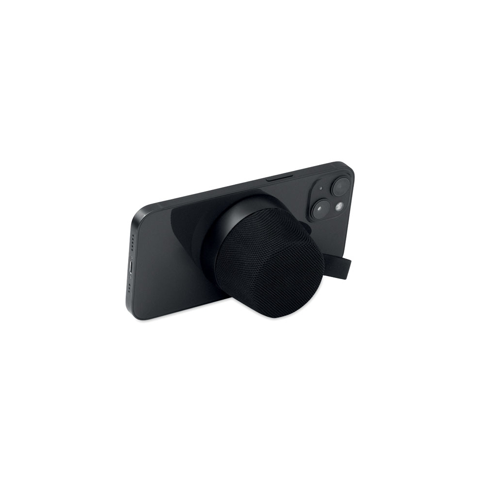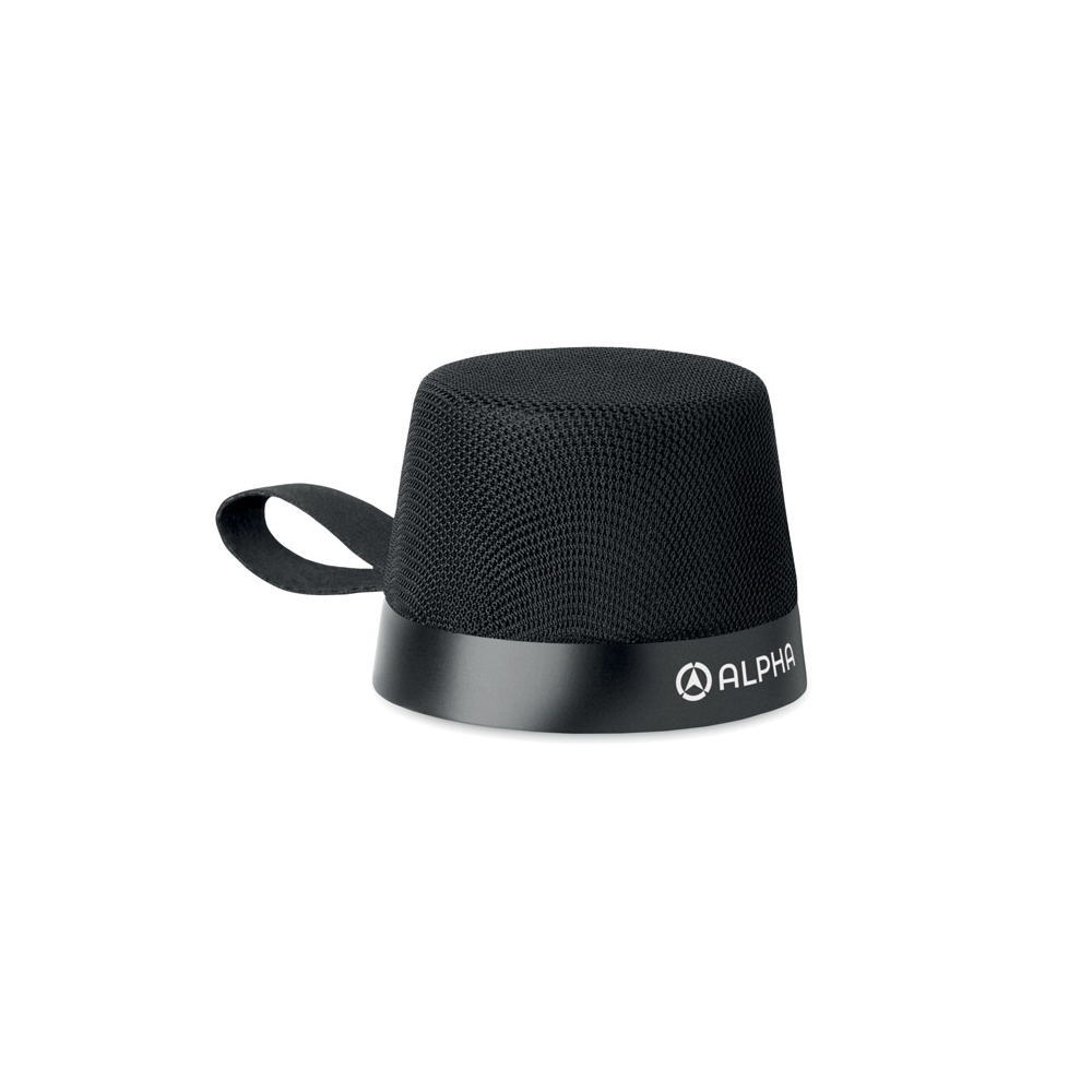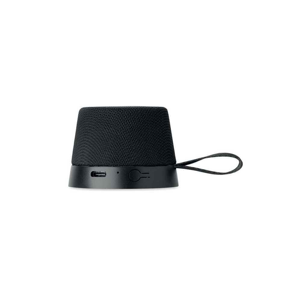 Artikel-Nr: OCBMO2648-034.2 wireless Lautsprecher. Gehäuse aus ABS und RPET-Polyestergewebe. Mit Schlaufe. Der rückseitige Magnet unterstützt die Halterungs-Funktionalität. Inkl. wiederaufladbarer Li-ION-Akku mit 300 mAh. Ausgangsdaten: 3 W, 4 Ohm und 5 V. Spielzeit ca. 2 Stunden.